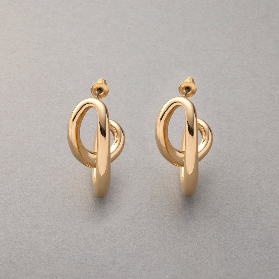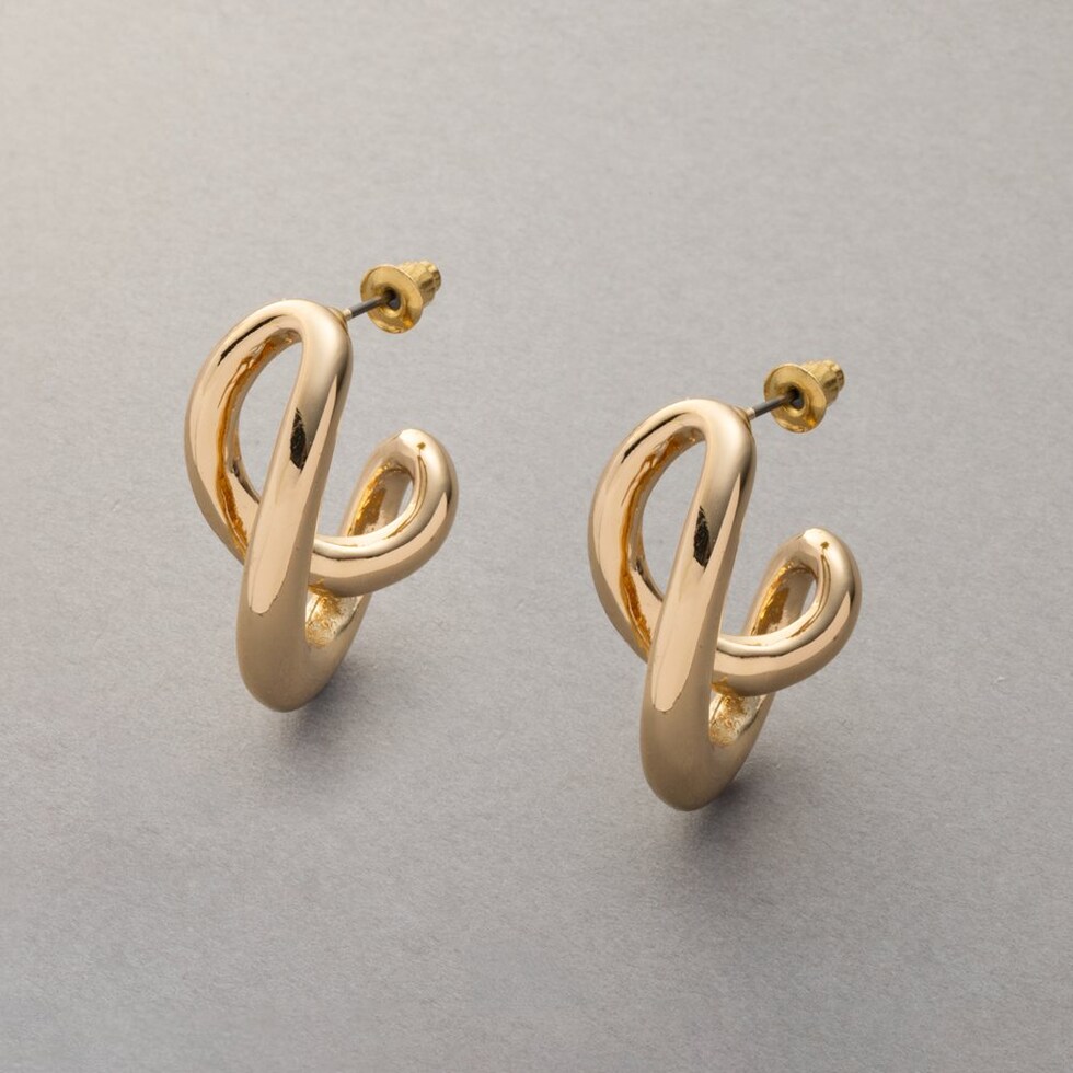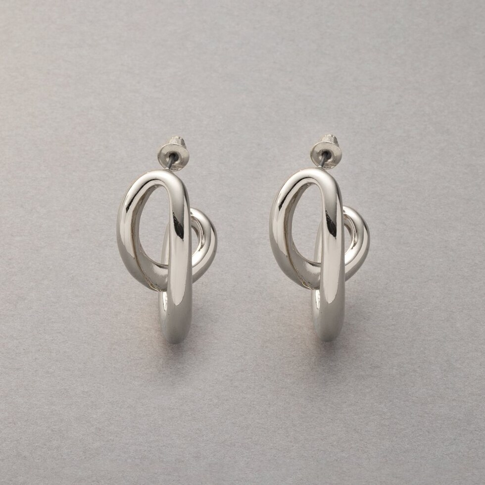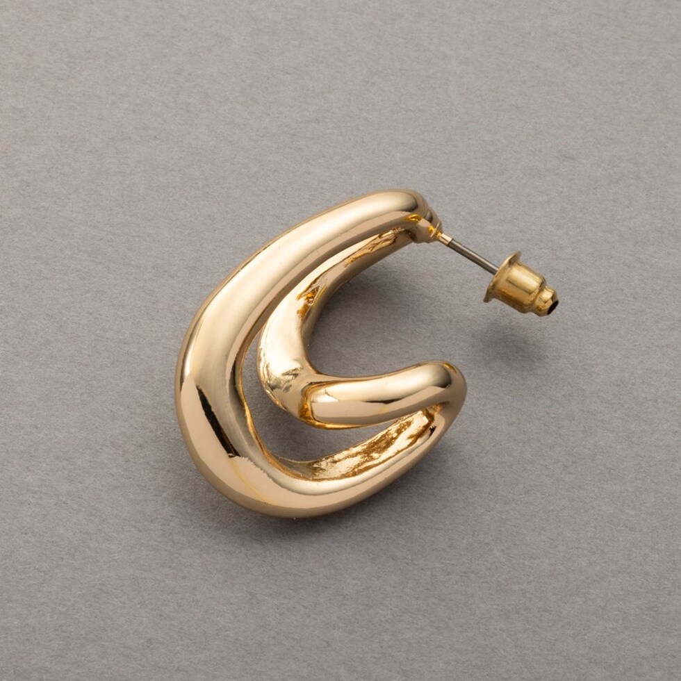 個性的なフォルムが目を惹くフープピアス。立体感のある変形デザインが、見る角度によって表情豊かに艶めきます。サッと着けるだけで顔周りが映えるオススメのアイテム◎