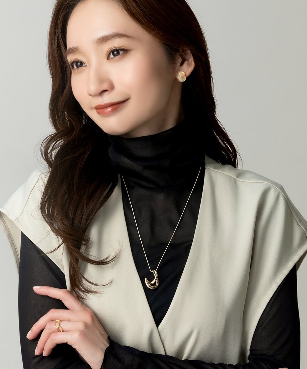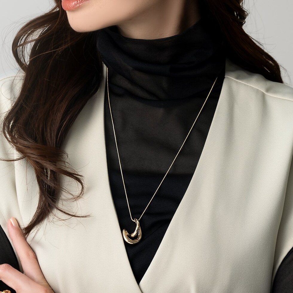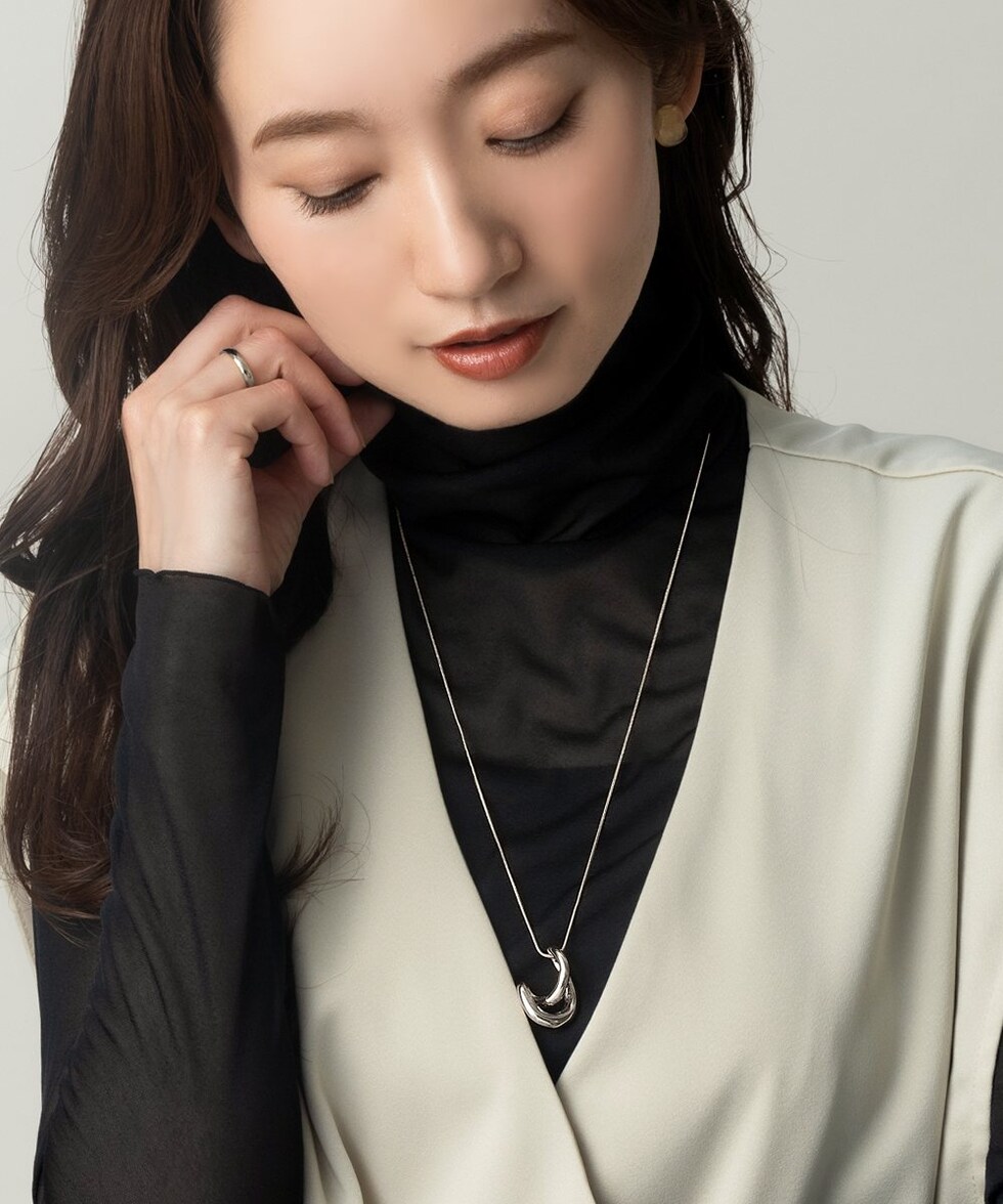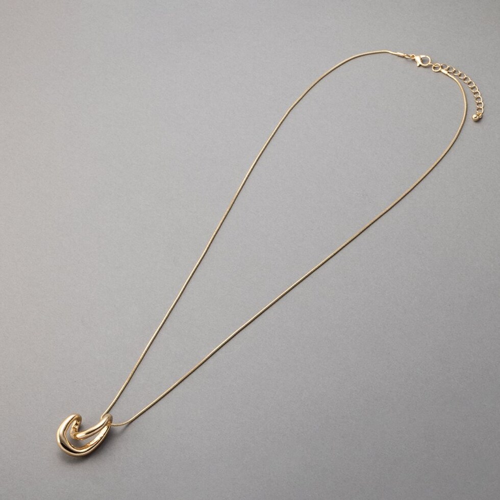 個性的なモチーフが目を惹くロングネックレス。立体感のある変形メタルが、表情豊かに艶めこなれた印象を演出します。サッと着けるだけでコーデが映えるオススメのアイテム◎