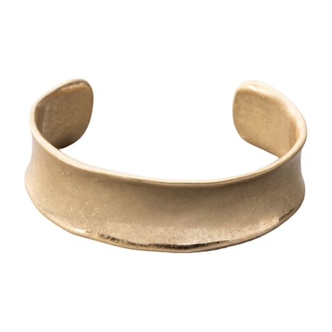 カーブメタルのヴィンテージ調オープンバングル。少しくびれたカーブラインと幅広なフォルムが、いつものスタイルを大人モードにクラスアップ。表面に加工を施したセミマットな質感がヴィンテージライクな逸品です。