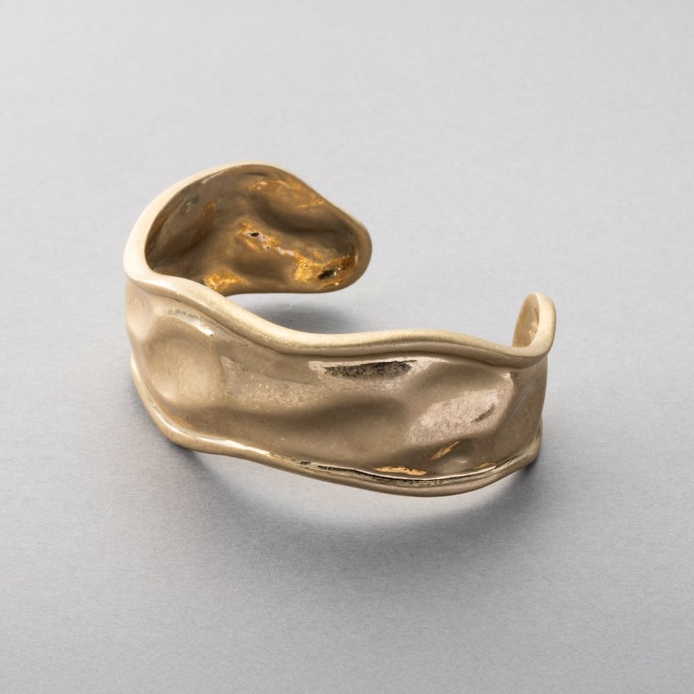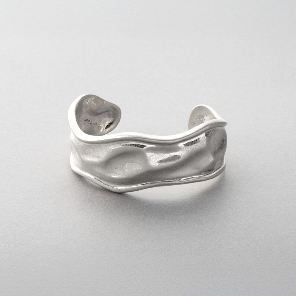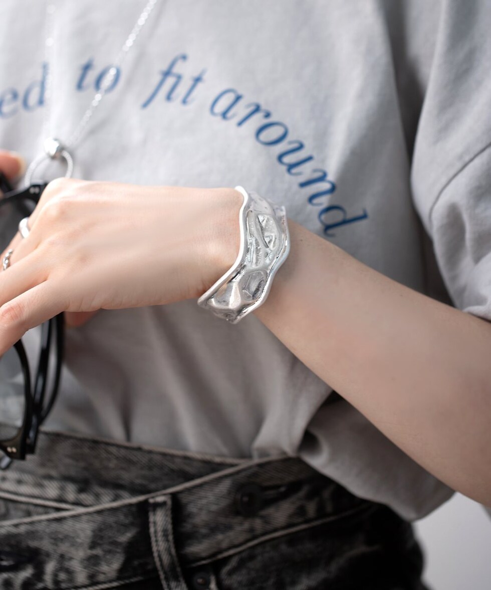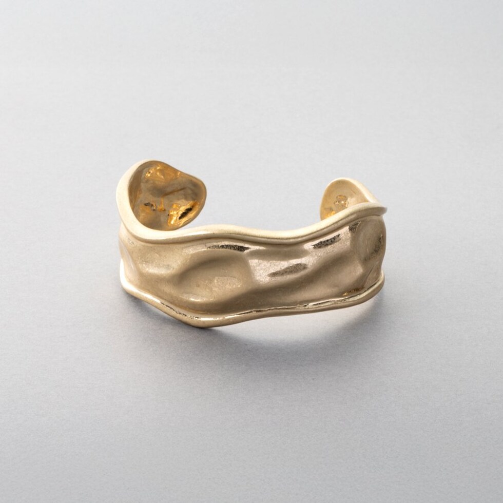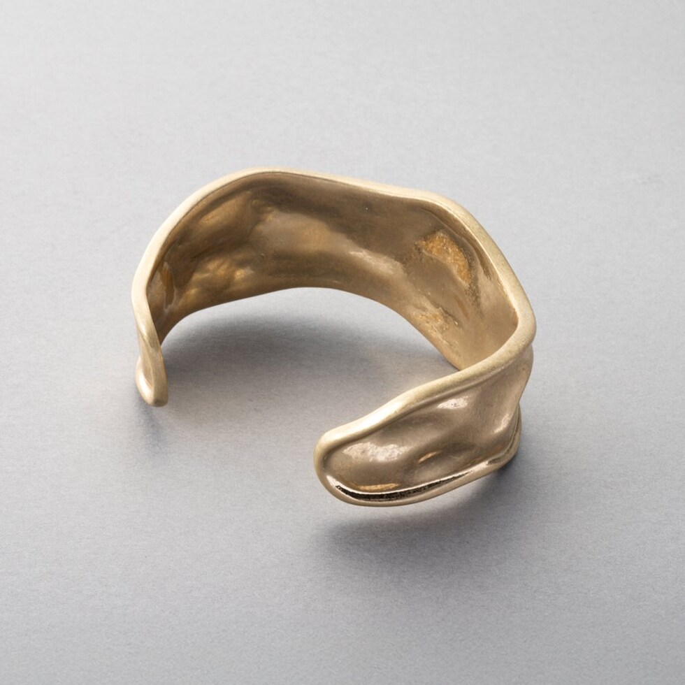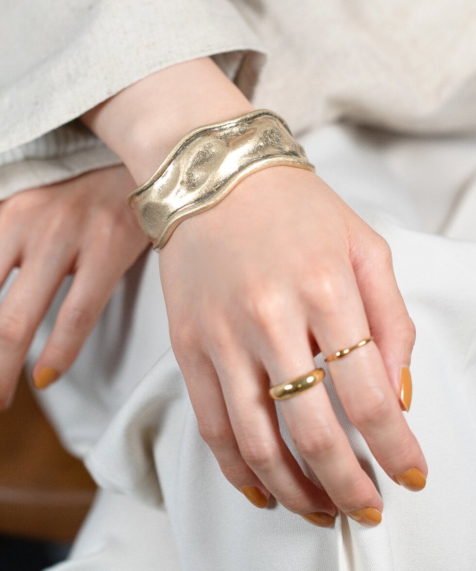 ニュアンスのあるクラフト調バングル。ヴィンテージ風のセミマットな質感で、幅広でもコーデに馴染みやすいデザインです。シンプルなTシャツやワンピースにも似合うから春夏コーデのアクセントとして活躍間違いなし◎