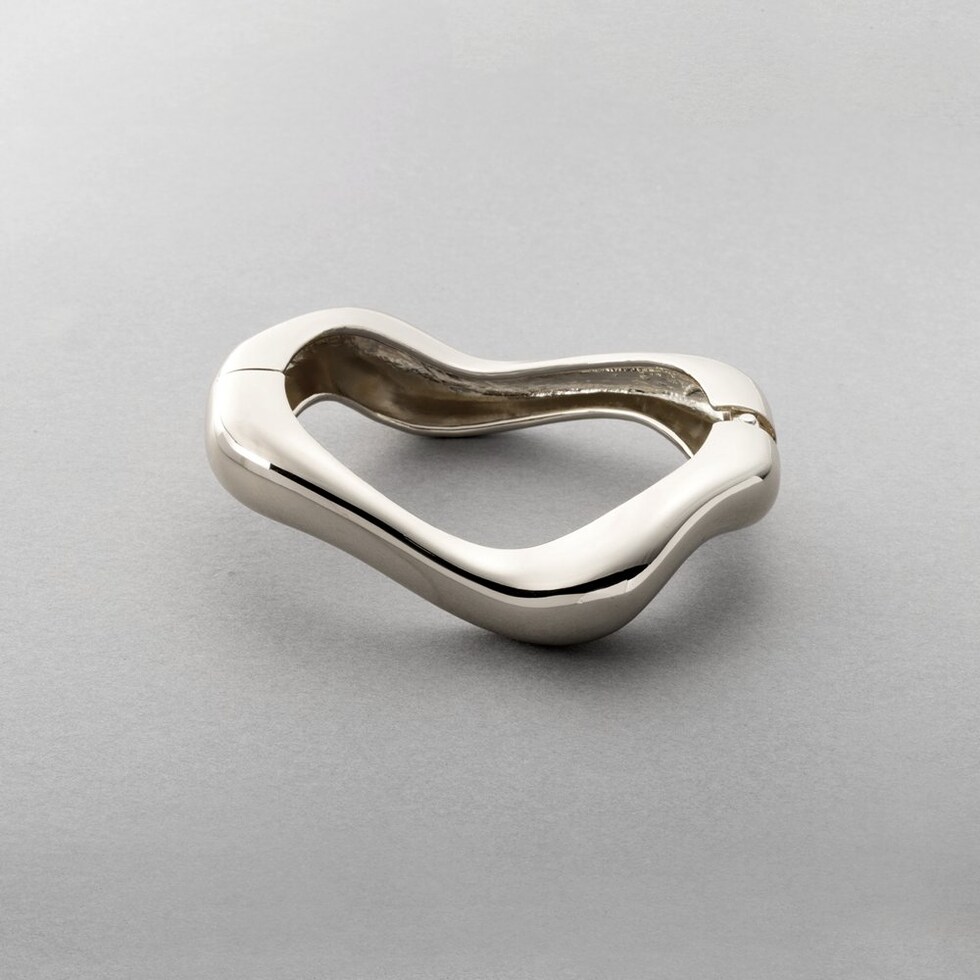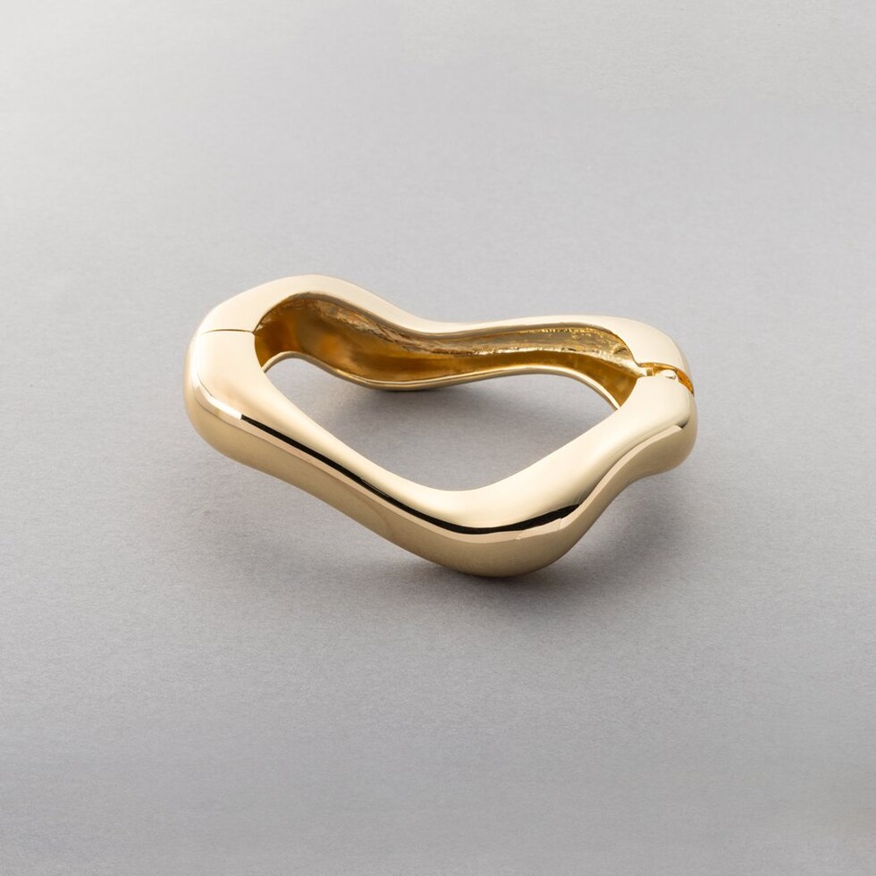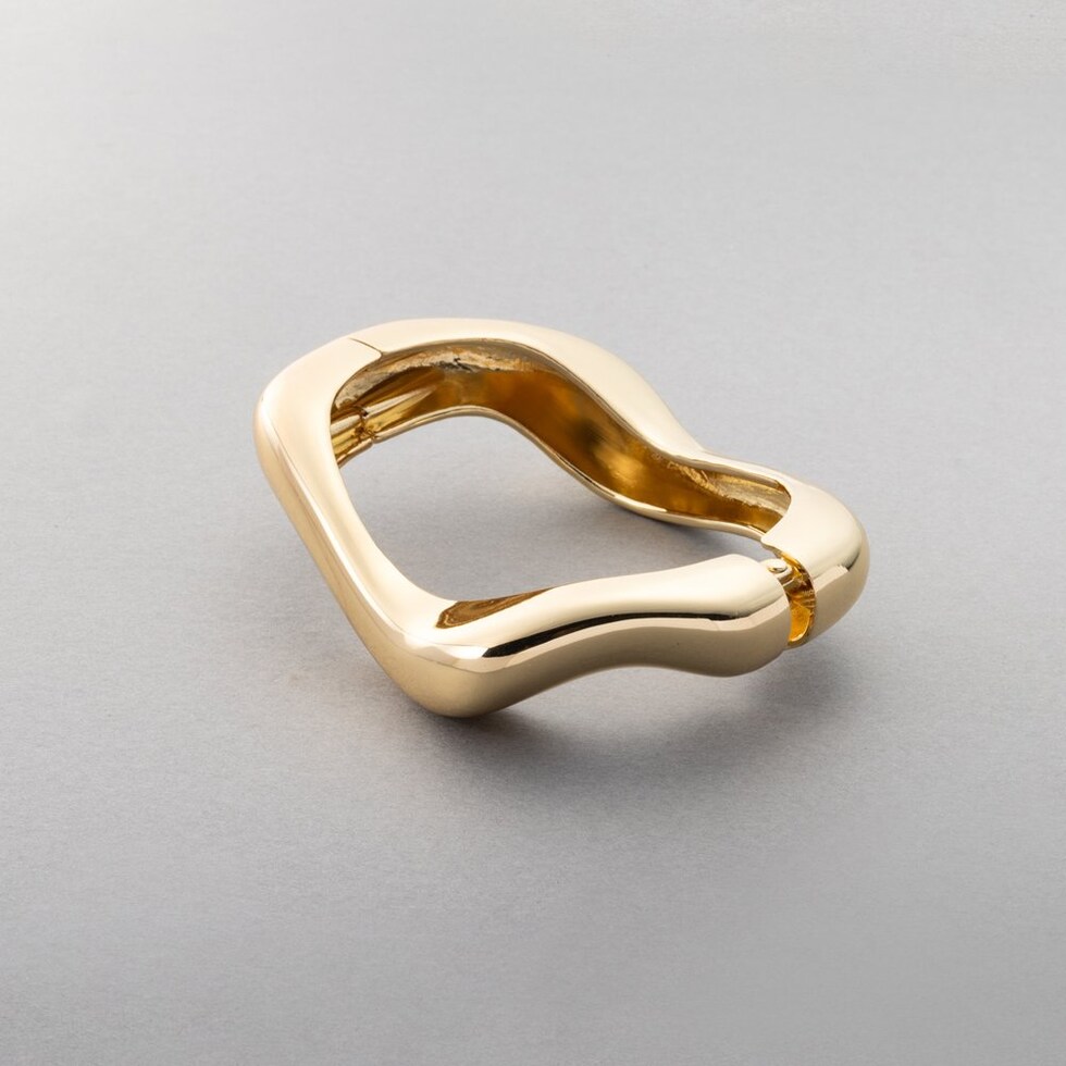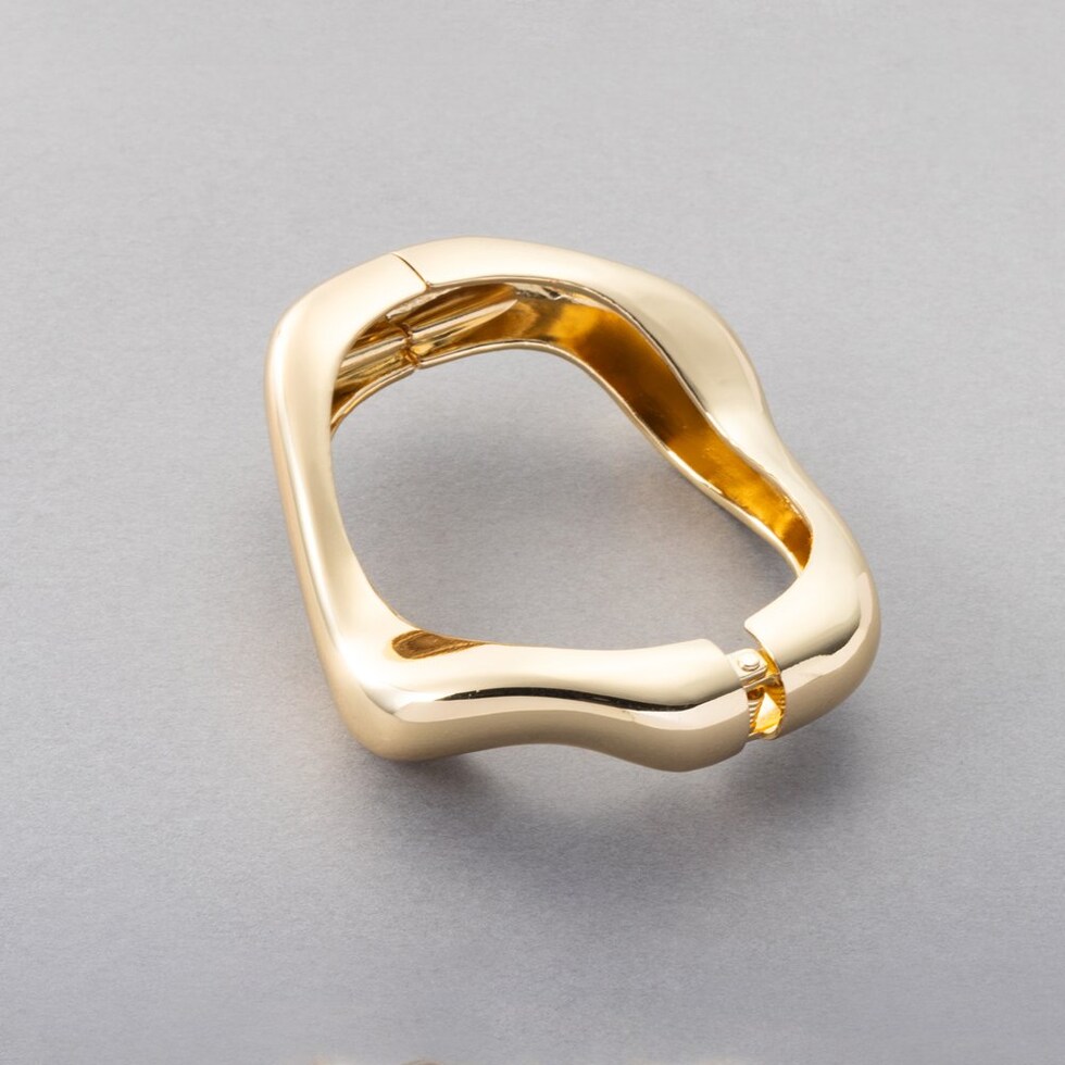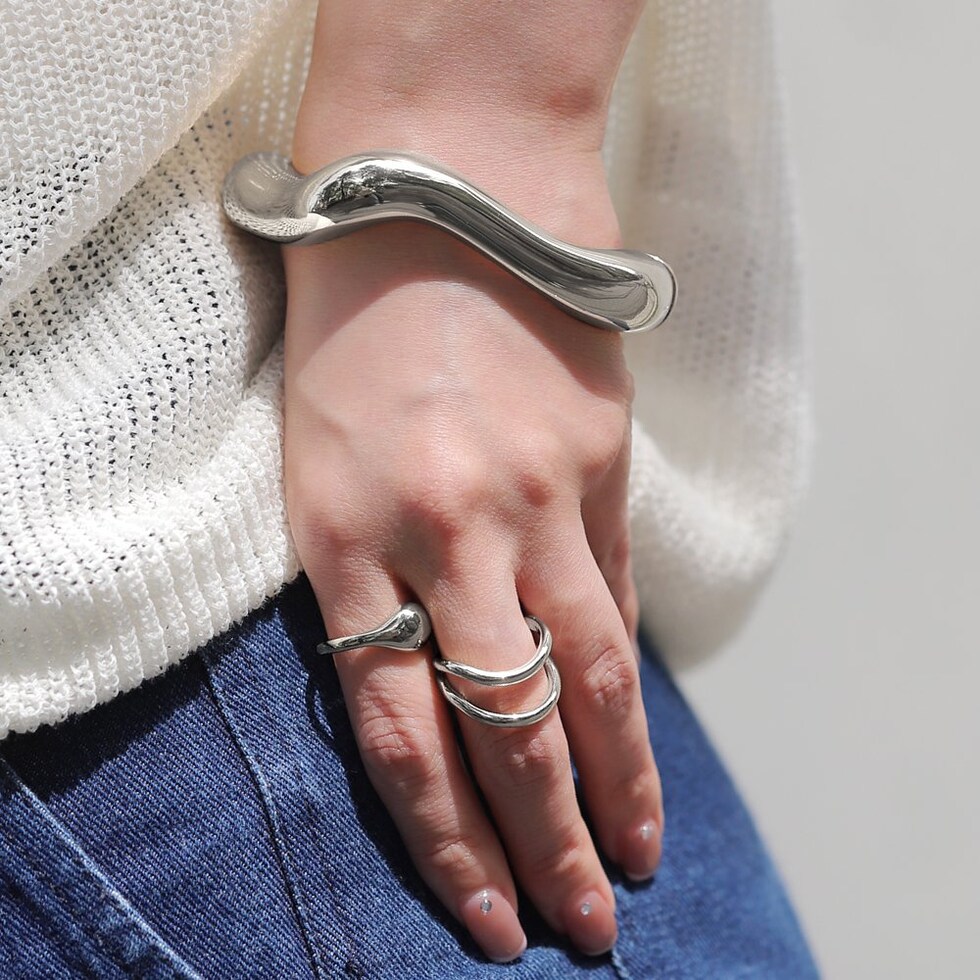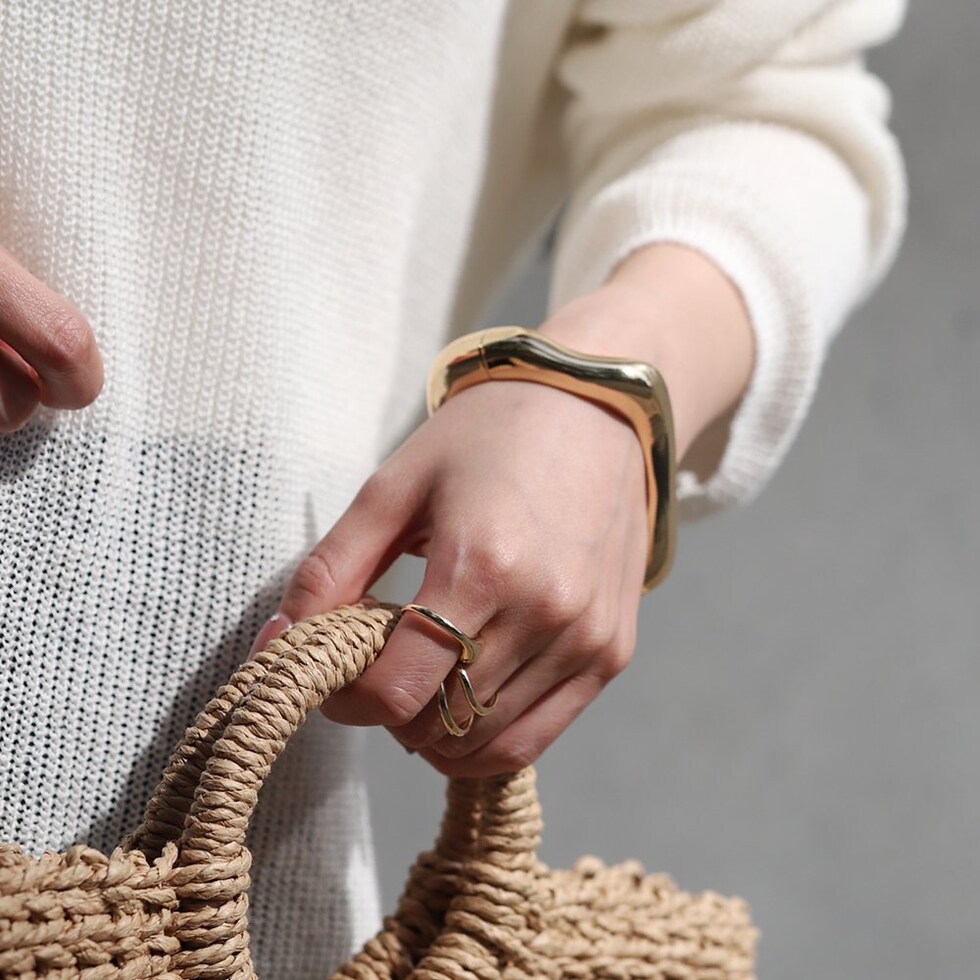 ぷっくり艶めくメタルバングル。ごつめフォルムと艶やかなメタルが重厚感たっぷりなひと品。手元コーデを格上げする主役級のデザインが、これからの季節に重宝しそう◎開閉式タイプでカチッと留まるから着脱も簡単です。