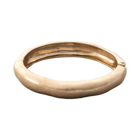 クラフト感のあるヴィンテージ調メタルバングル。艶を抑えたセミマットなメタルで大人コーデのアクセントにぴったり。開閉式タイプでカチッと留まるから着脱も簡単です。