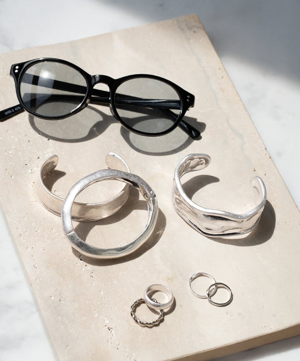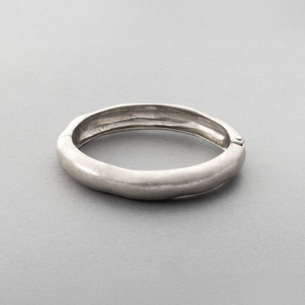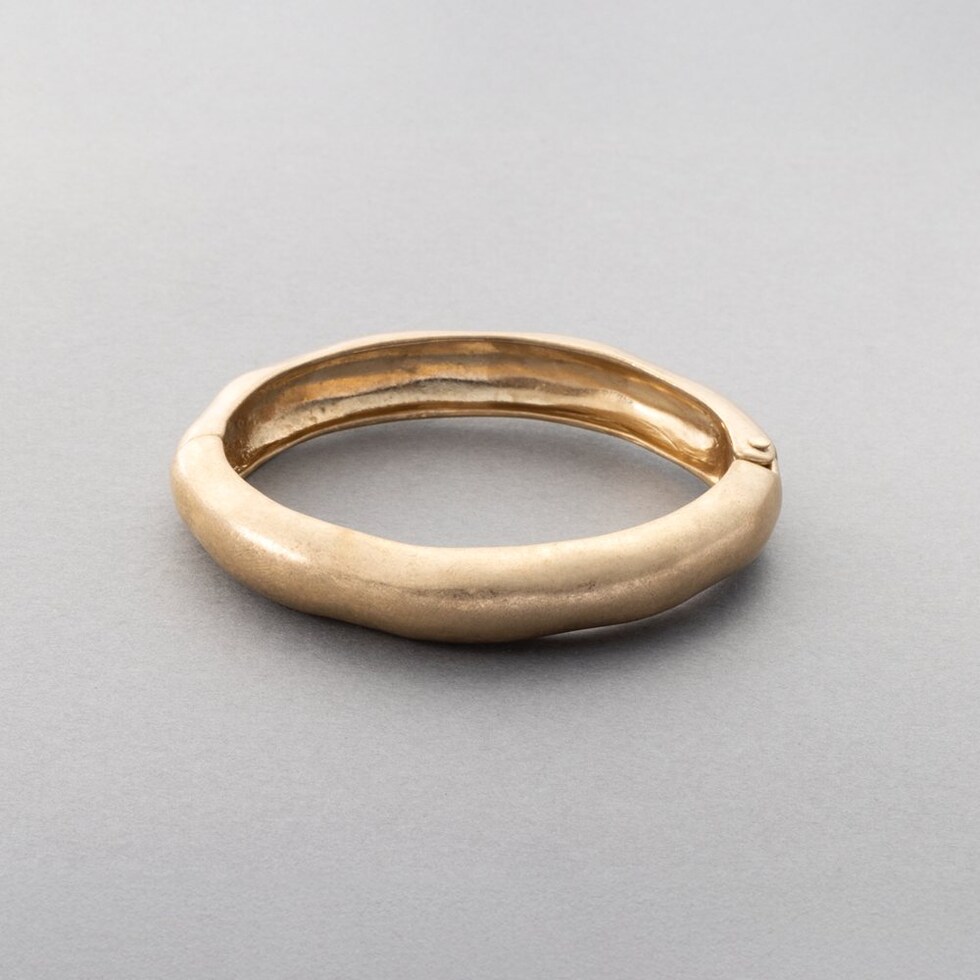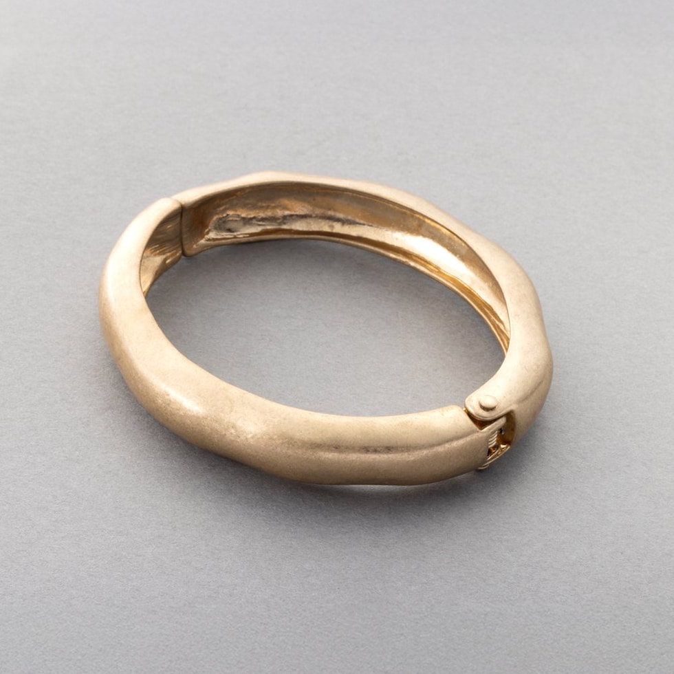 クラフト感のあるヴィンテージ調メタルバングル。艶を抑えたセミマットなメタルで大人コーデのアクセントにぴったり。開閉式タイプでカチッと留まるから着脱も簡単です。