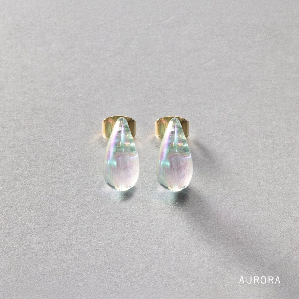 ピアス レディース オーロラ キレイ色 クリアカラー ぷっくり ドロップ しずく キャンディーカラー オーロラ cream dot ゆうパケット [ピンク_ピアス]