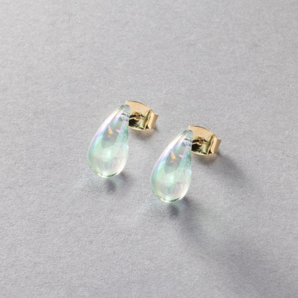 小ぶりサイズ感が可愛い、オーロラカラーのぷっくりドロップピアス。涼しげな色合いがシーズンライクな雰囲気をプラスします。カジュアルからきれいめまで、コーデにプラスしたい差し色アイテム。