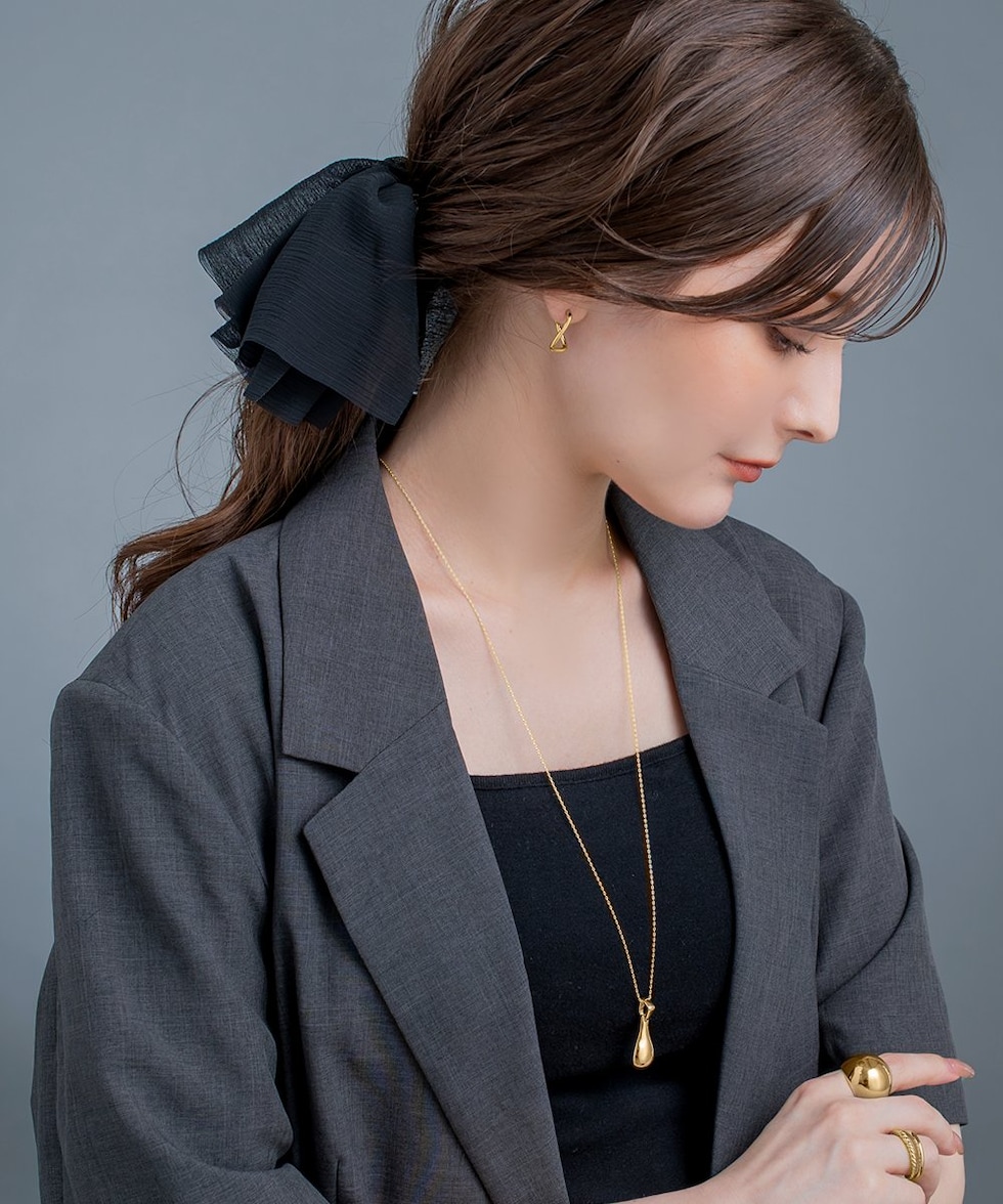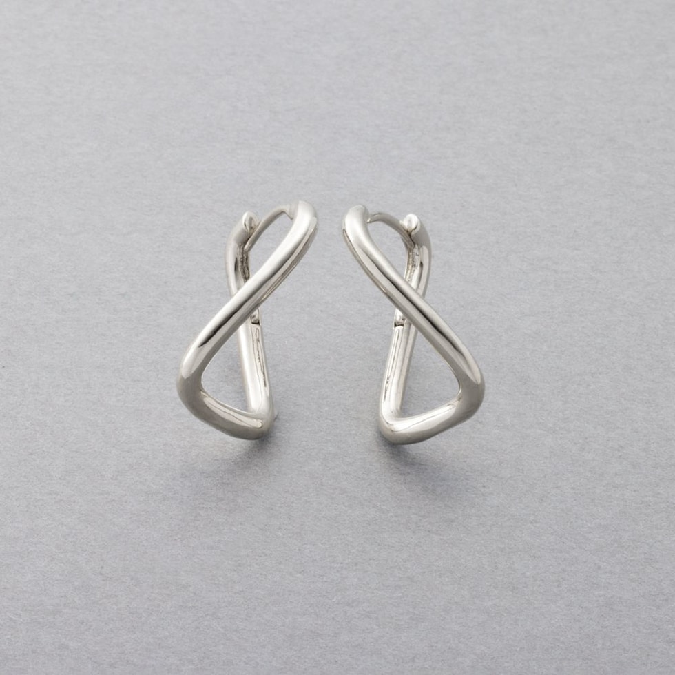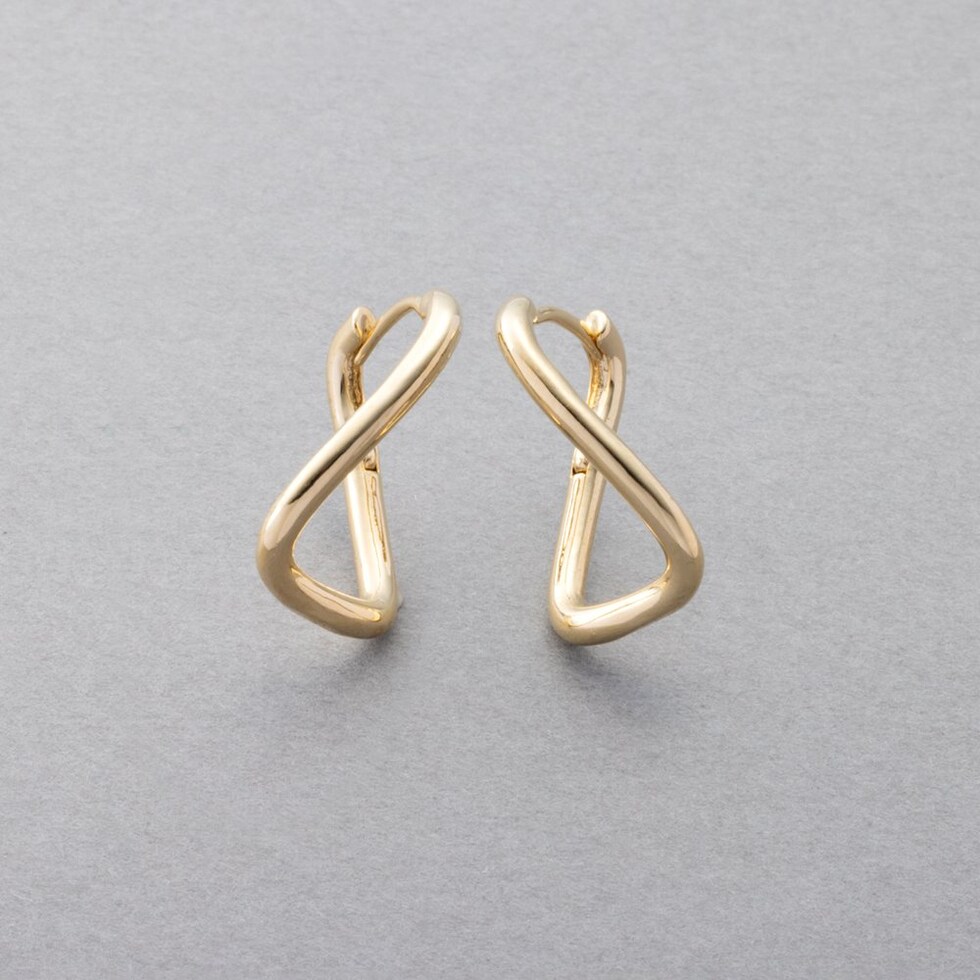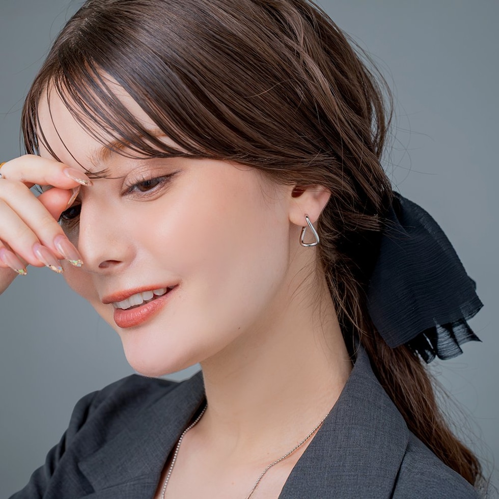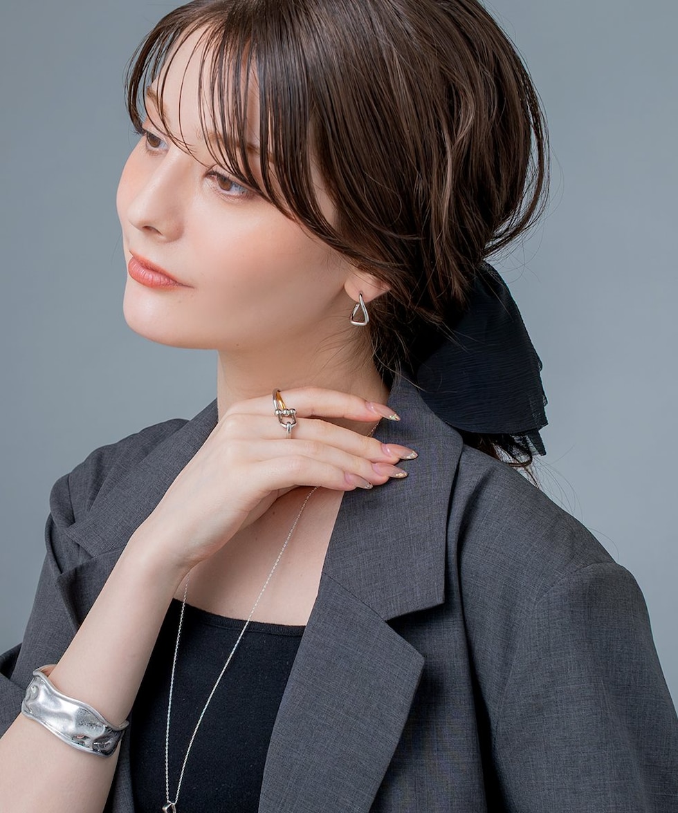 立体的なクロスラインのフープピアス。角度によって印象が違う個性的なフォルムがグッとこなれた雰囲気に仕上がるひと品。程よく目を惹く、コーデのアクセントにオススメのデザインです。