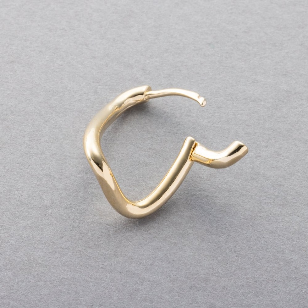 ピアス レディース キャッチレス 中折れ 開閉式 ワンタッチ フープ クロスライン 変形 メタル 艶 ひねり cream dot ゆうパケット [ゴールド_ピアス]