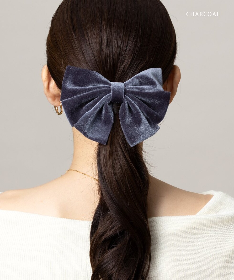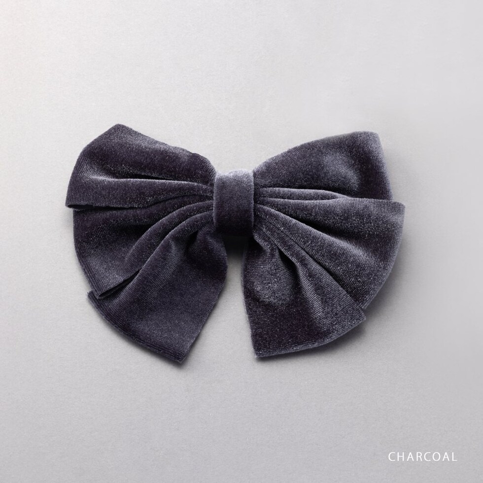 ヘアアクセサリー レディース バレッタ リボン ベロア ベルベット 光沢感 大きめ 多重リボン ヘアクリップ ヘアアクセ ヘアアレンジ 簡単 まとめ髪 髪留め ボリューム チャコール cream dot ゆうパケット [チャコール_ワンサイズ]