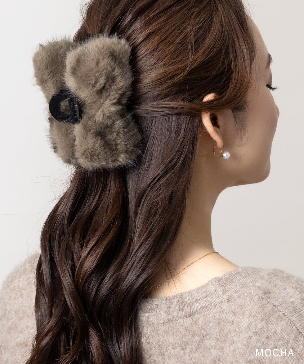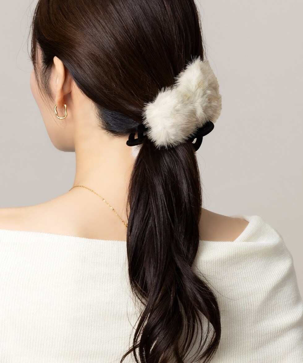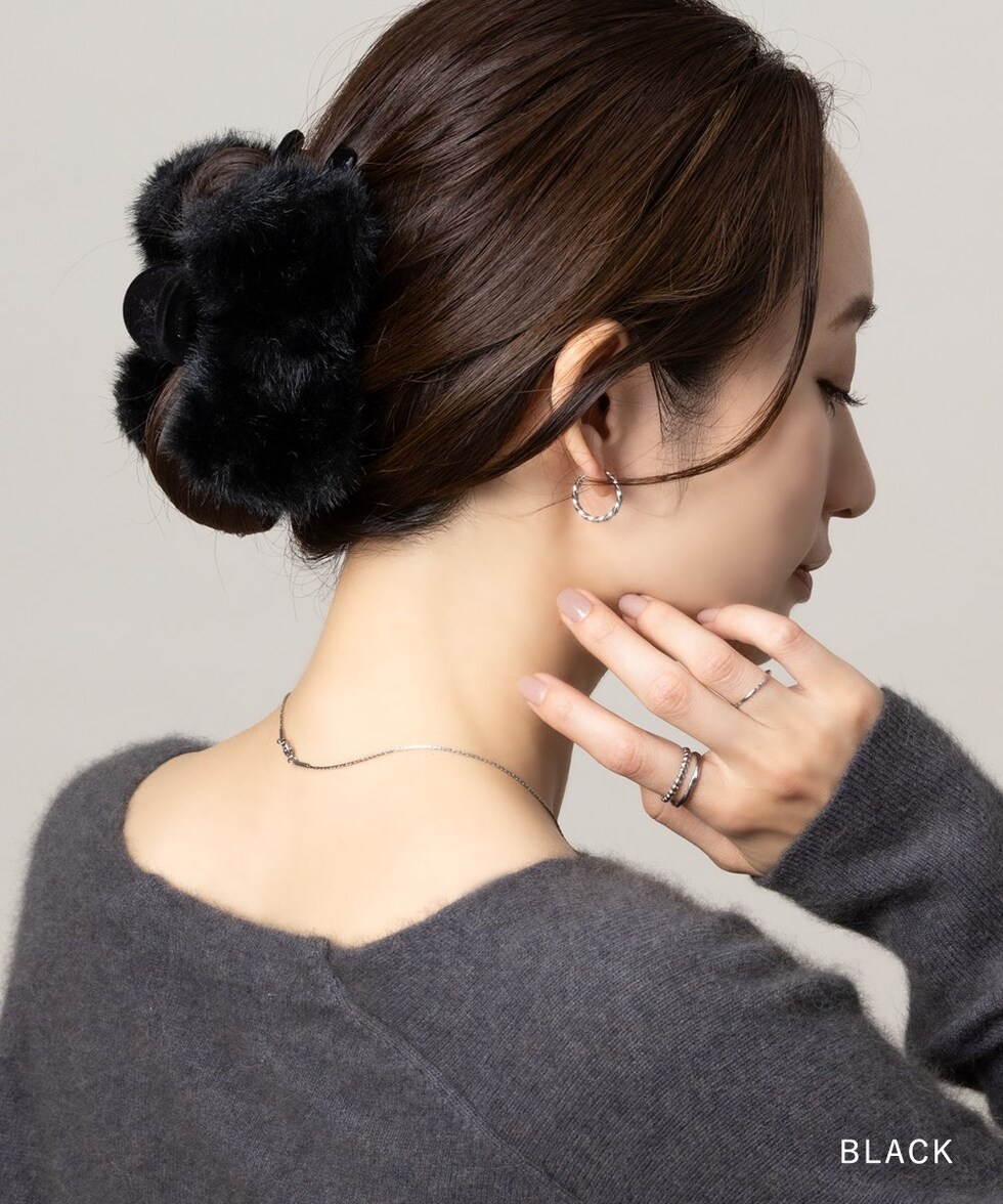 大人フェミニンを叶える、フェイクファーの大きめバンスクリップ。ふわふわと、触り心地の良い素材感がシーズンムードをグッと高めてくれる◎まとめ髪に挟むだけで、簡単に秋冬らしいスタイルが完成する優秀アイテムです。