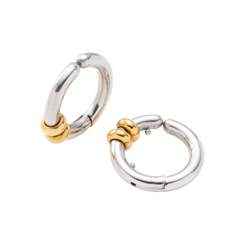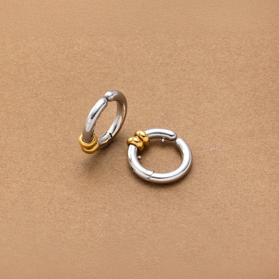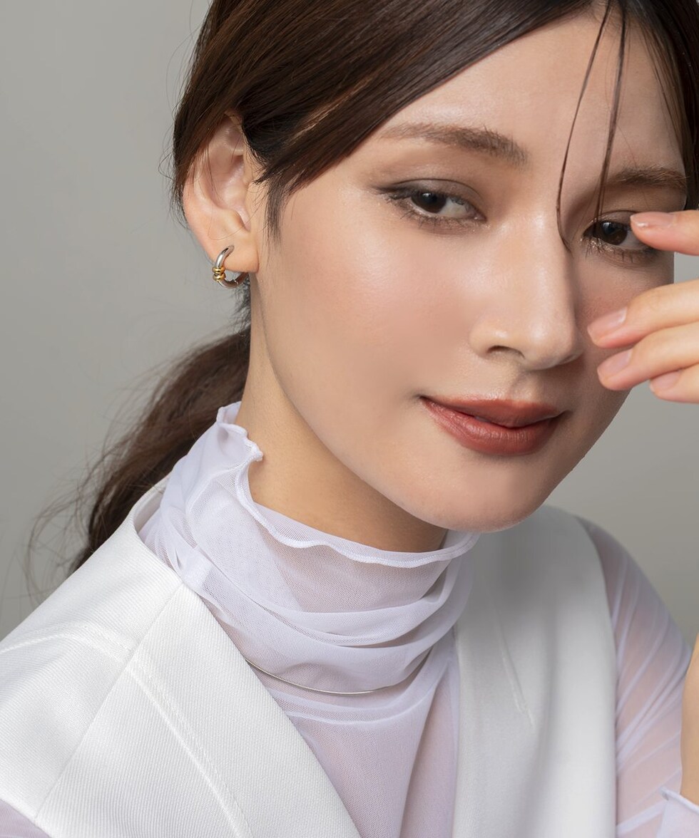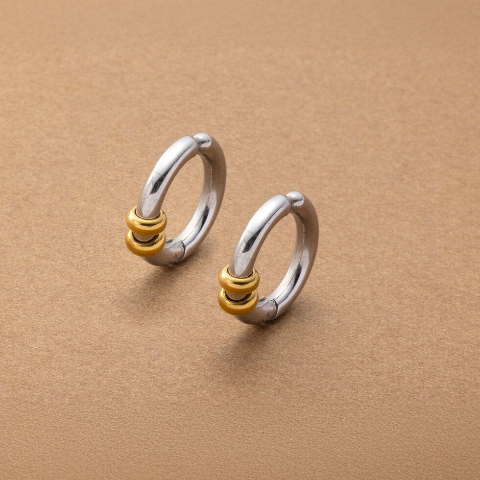 Wリングを飾ったMIXカラーのカフイヤリング。シルバーカラーをベースにすることで、主張しすぎずカジュアルな雰囲気で身につけられます。錆びにくいステンレス製でデイリー使いにぴったり◎