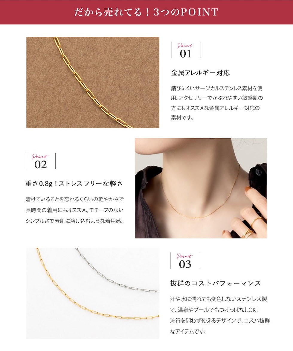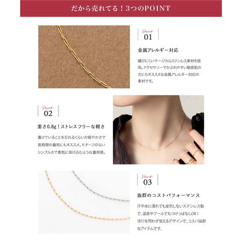 ネックレス ステンレス 金属アレルギー サージカルステンレス レディース つけっぱなし ショート オーバルチェーン スキンジュエリー 極細 軽量 cream dot ゆうパケット [ゴールド_ワンサイズ]