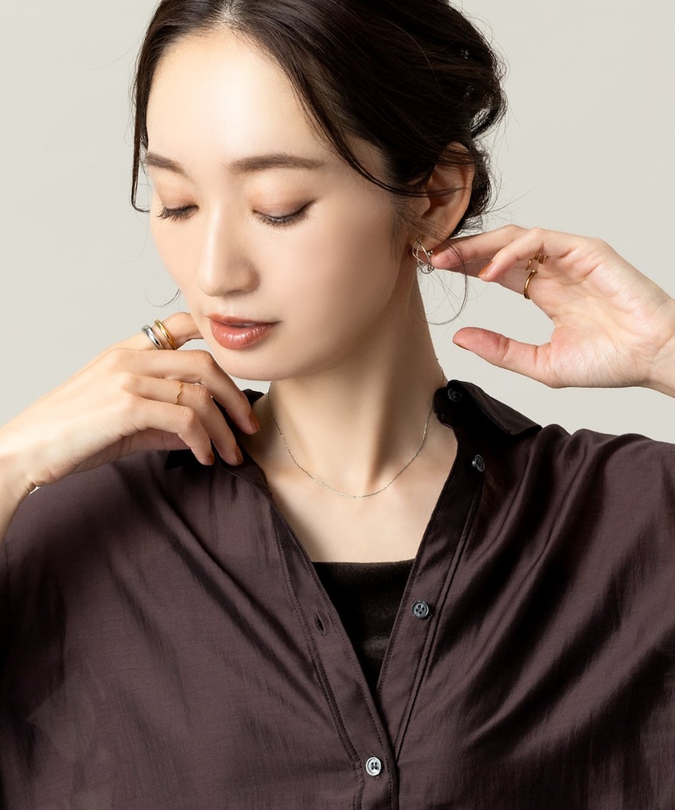 着けていることを忘れるくらいの軽やかさで長時間の着用にもオススメ。モチーフのないシンプルさで素肌に溶け込むような着用感。