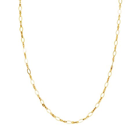 平らなオーバルチェーンのステンレス製華奢ネックレス。主張しすぎないシンプルなデザインが、どんなスタイルにも自然に馴染んでくれる。エンドパーツにはガラスパールをあしらって、Y字ネックレスとしても使えるアイテムです。