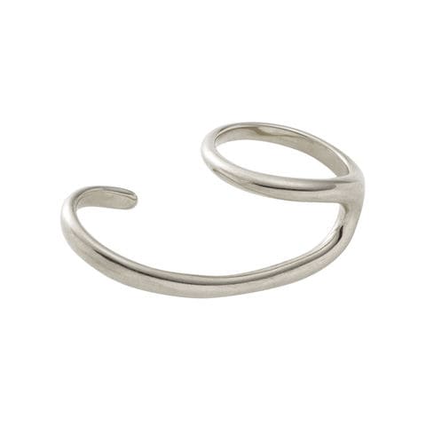 緩やかな曲線を描く艶やかメタルのダブルフィンガーリング。隣り合う2本の指に装着して指先を印象づける個性的なアイテムで、存在感を放つ大人な手元を演出◎裏面で装着して、2連風デザインでもお楽しみいただけます。