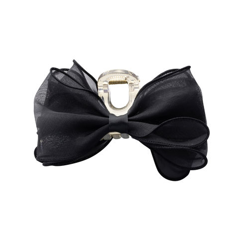 ヘアアクセサリー レディース バンスクリップ ヘアクリップ リボン オーガンジー シフォン チュール 透け感 大きめ しっかり留まる ボリューム ヘアアクセ ヘアアレンジ 簡単 まとめ髪 髪留め ブラック cream dot 定形外郵便 [ブラック_ワンサイズ]
