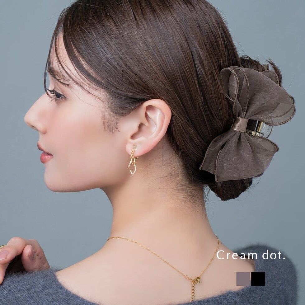 ヘアアクセサリー レディース バンスクリップ ヘアクリップ リボン オーガンジー シフォン チュール 透け感 大きめ しっかり留まる ボリューム ヘアアクセ ヘアアレンジ 簡単 まとめ髪 髪留め ブラック cream dot 定形外郵便 [モカ_ワンサイズ]