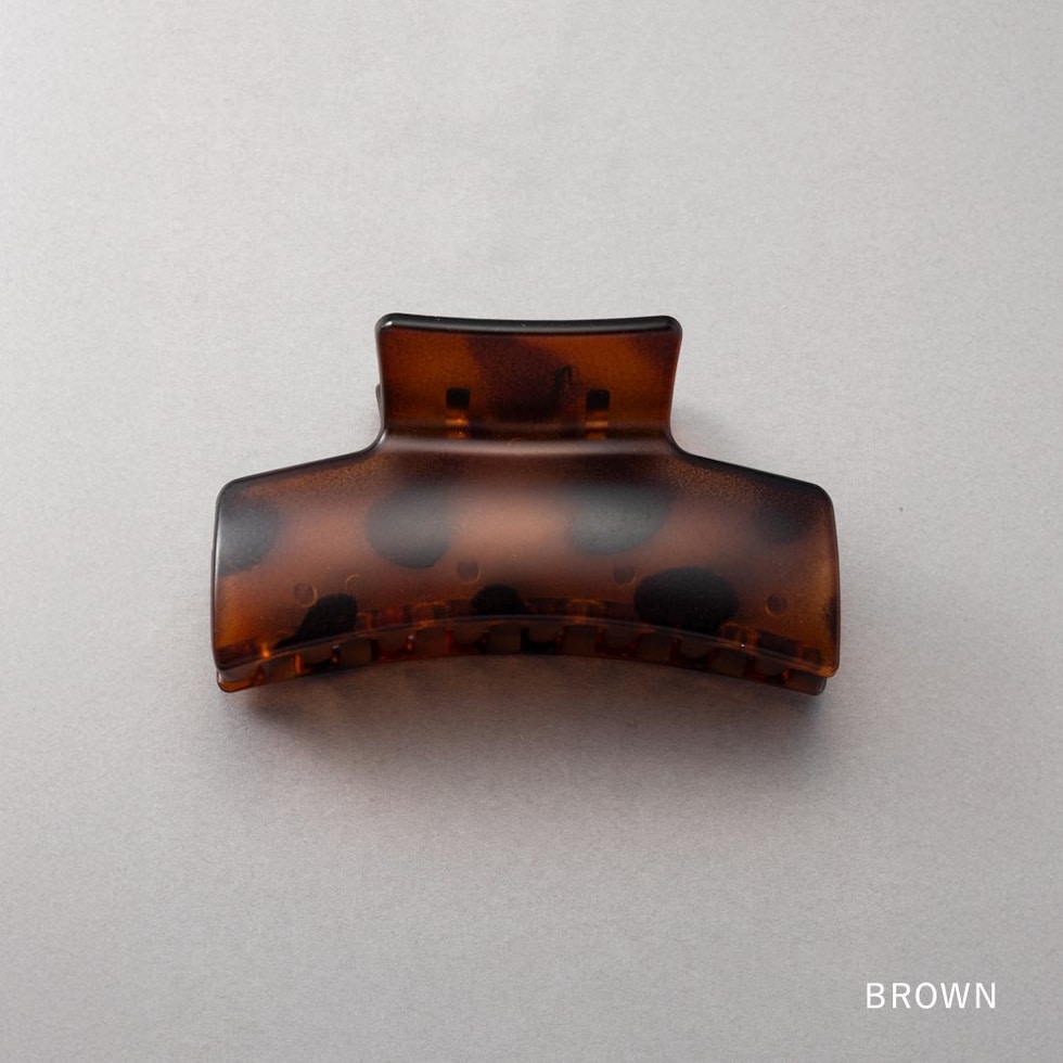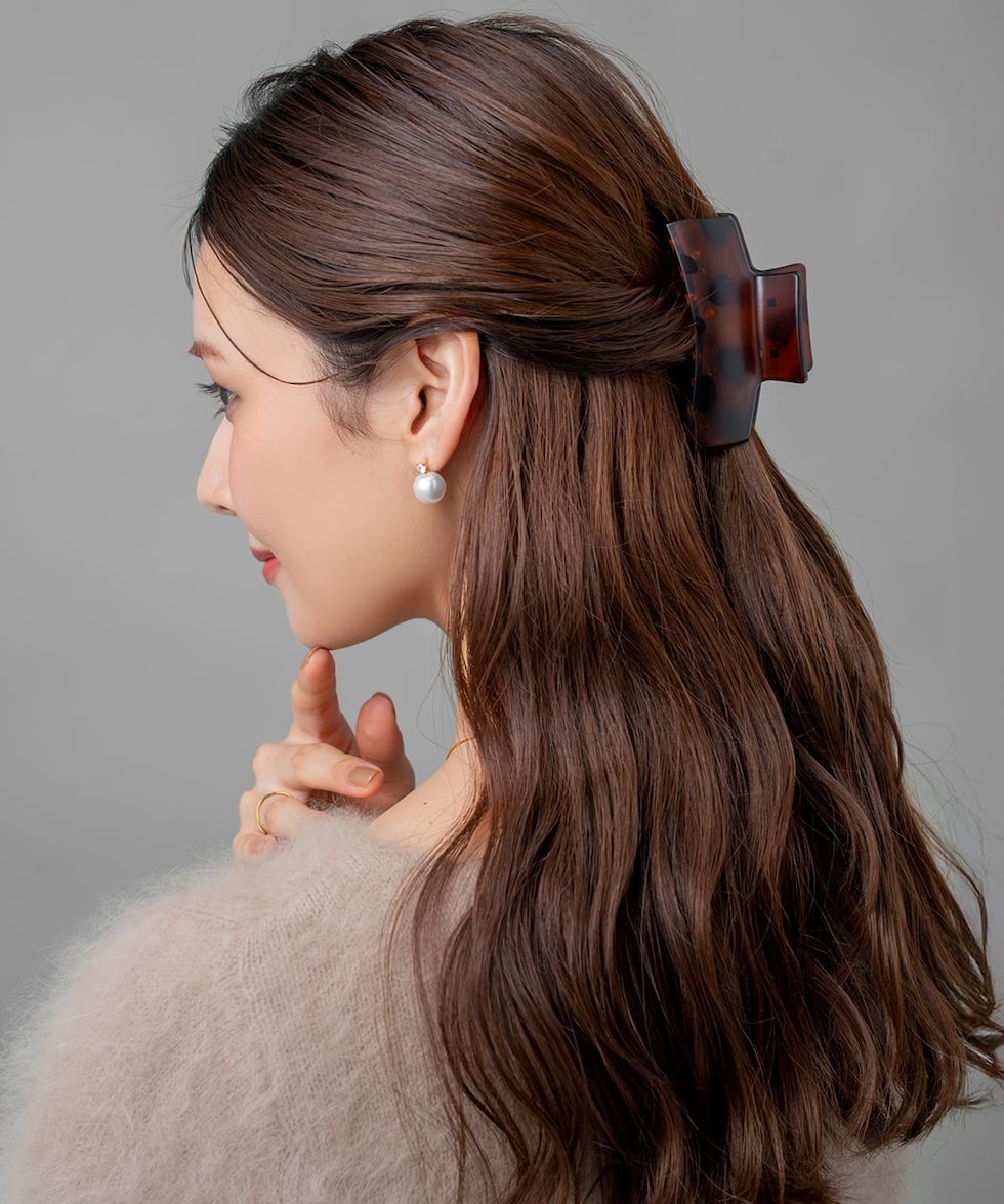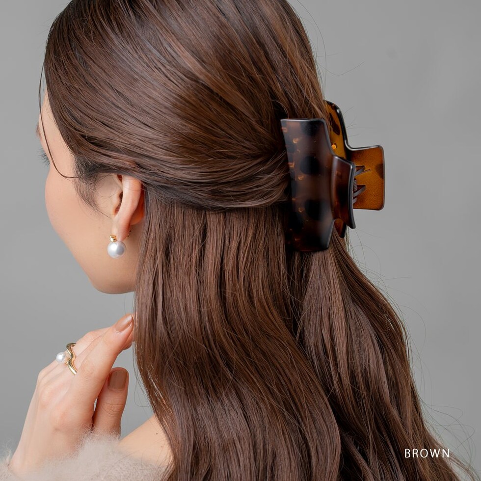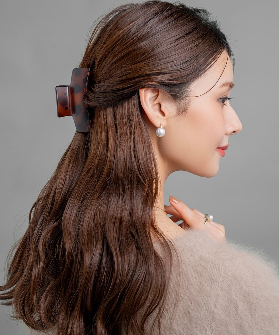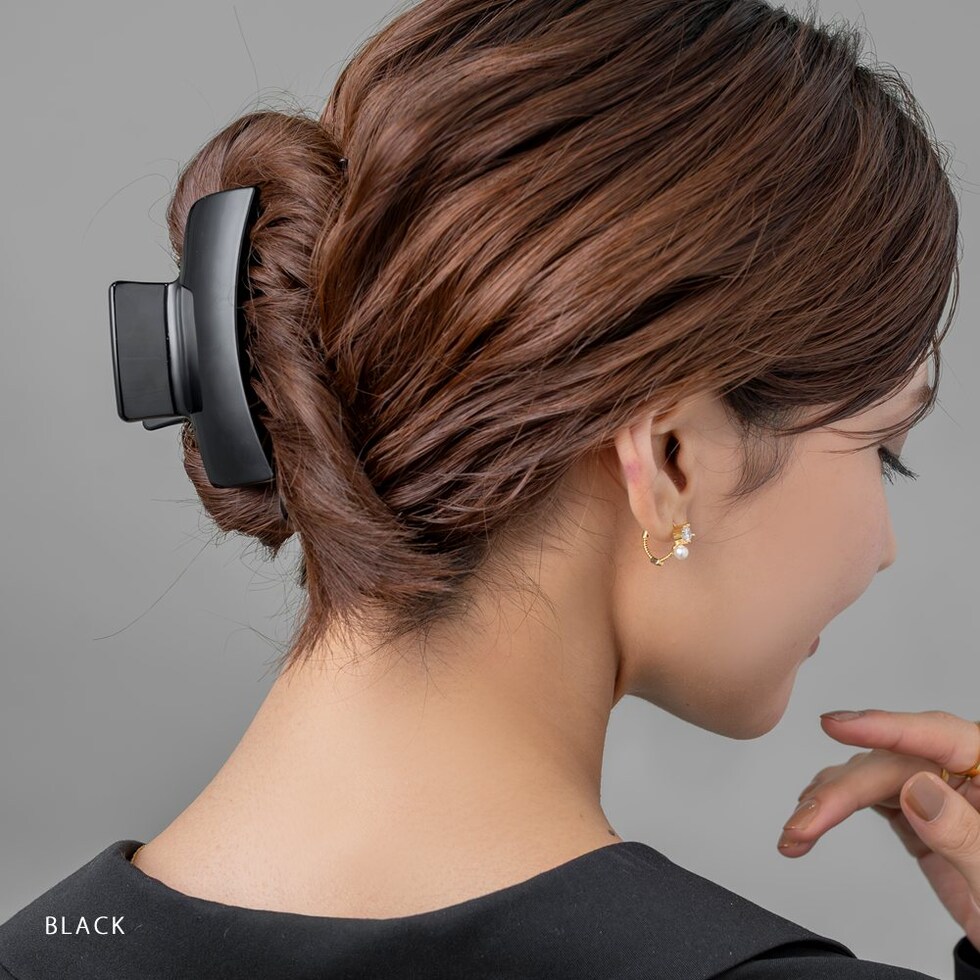 シンプルで使いやすいスクエアフォルムのバンスクリップ。アレンジをしっかりホールドするサイジングとデイリーに使えるカラーでオススメのひと品。高見えでこなれた雰囲気をプラスしてくれるアイテムです。