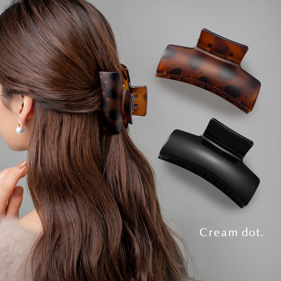 ヘアアクセサリー レディース バンスクリップ スクエア ヘアクリップ ヘアアクセ ヘアアレンジ 簡単 まとめ髪 髪留め しっかり留まる 毛量 多め 多毛 ブラウン cream dot 定形外郵便 [ブラック_ワンサイズ]