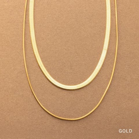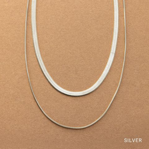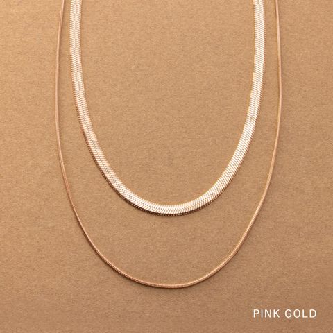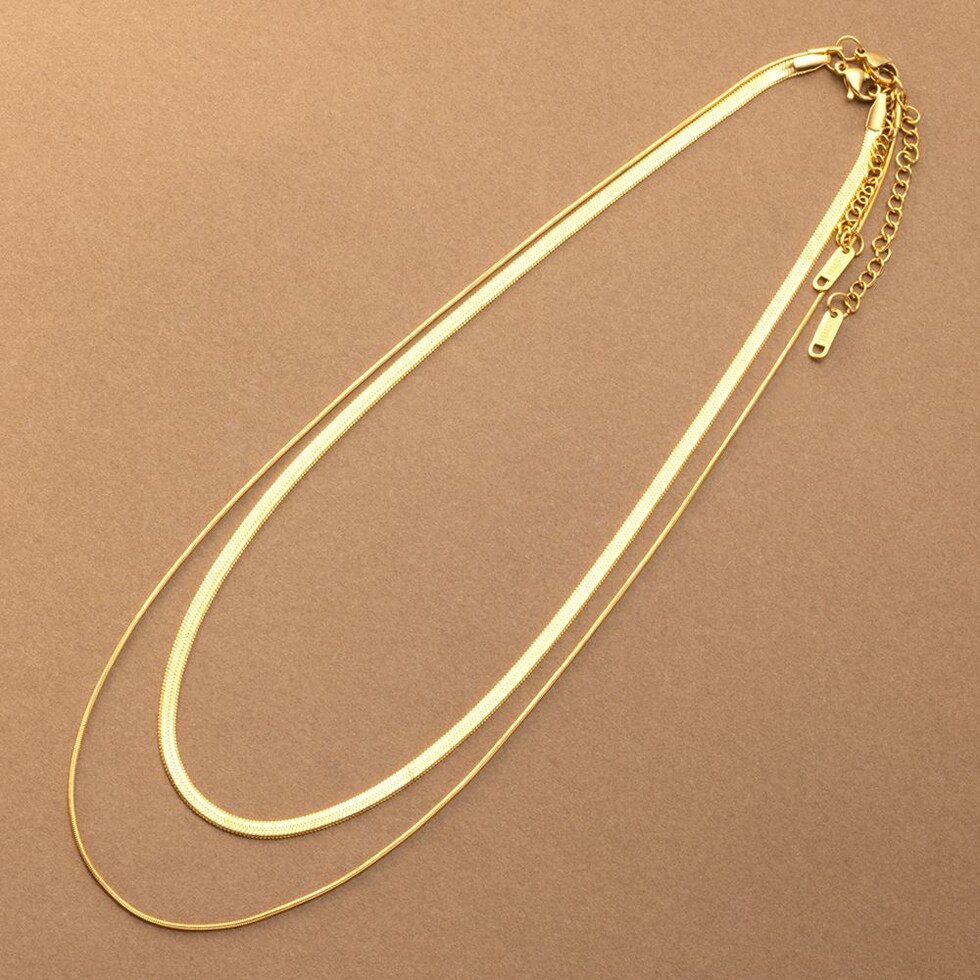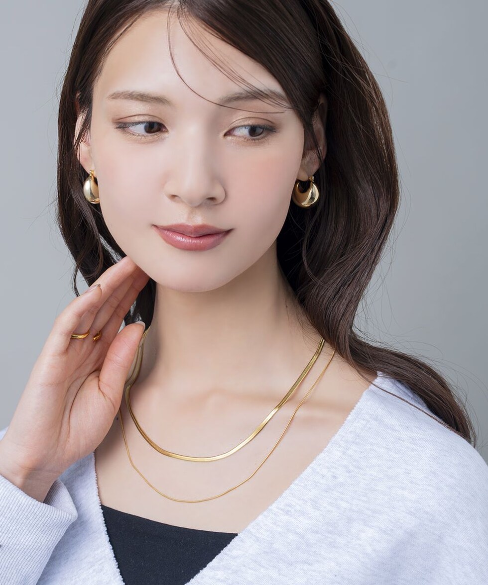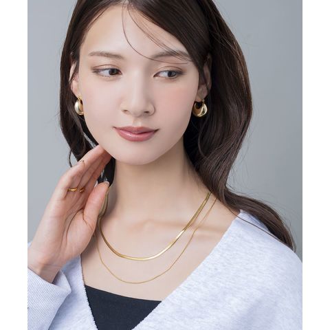 ちょっぴり太め&細めのスネークチェーンを合わせたメリハリのあるセットで、カジュアルにもキレイめにも合わせやすい万能アイテム。