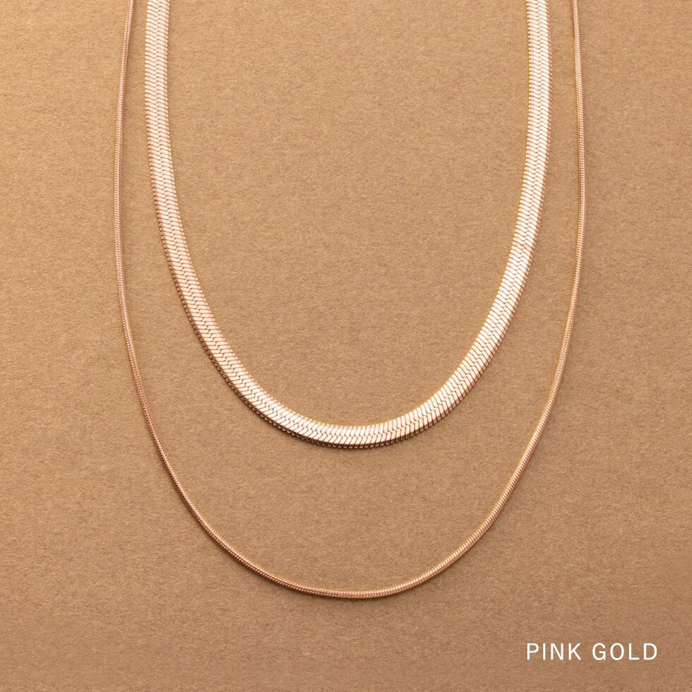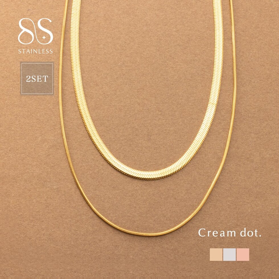 ネックレス ステンレス 金属アレルギー サージカルステンレス レディース 2点セット つけっぱなし ショート スネークチェーン スリム ワイド 3way 重ねづけ cream dot ゆうパケット [ピンクゴールド_2セット]