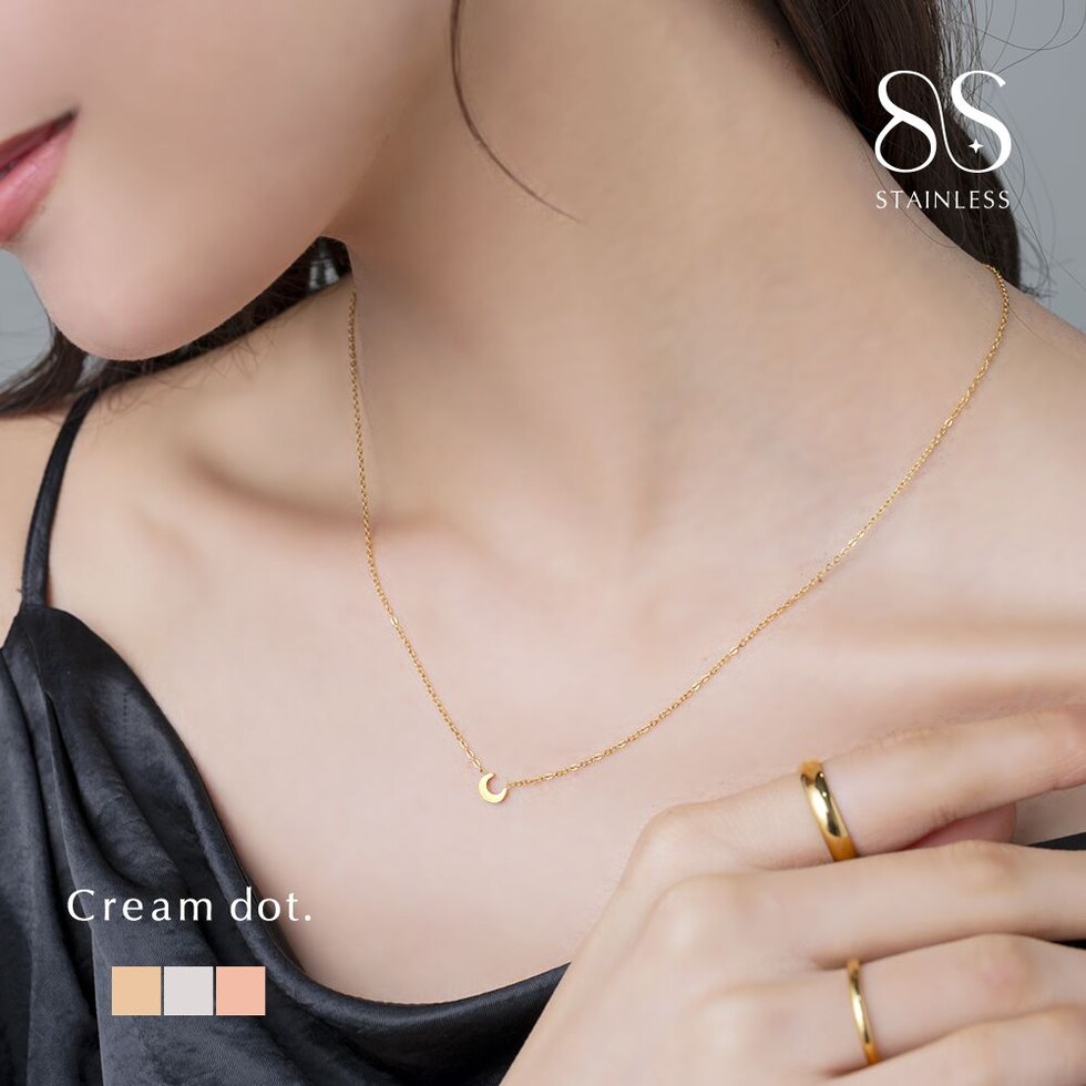 ネックレス ステンレス 金属アレルギー サージカルステンレス レディース つけっぱなし ショート チェーン 月 ムーン クレッセント メタル 艶 ミニ cream dot ゆうパケット [ピンクゴールド_ワンサイズ]