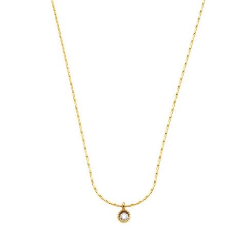 さりげなく煌めく極小ビジューのステンレス製華奢ネックレス。ビジューを囲むミルとベネチアンチェーンが、繊細な輝きと上品さを添えてくれます。シンプルなデザインでシーンを選ばず、オンオフ問わず活躍するアイテムです。