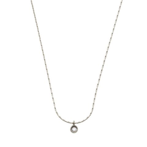 さりげなく煌めく極小ビジューのステンレス製華奢ネックレス。ビジューを囲むミルとベネチアンチェーンが、繊細な輝きと上品さを添えてくれます。シンプルなデザインでシーンを選ばず、オンオフ問わず活躍するアイテムです。