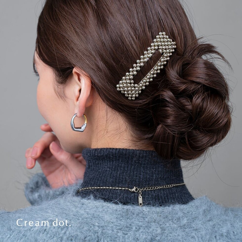 ヘアアクセサリー レディース ヘアピン パッチンピン スリーピン パッチン留め 大きめ ヘアクリップメタルボール バブルメタル メタルスフィア スクエア cream dot ゆうパケット [シルバー_ワンサイズ]