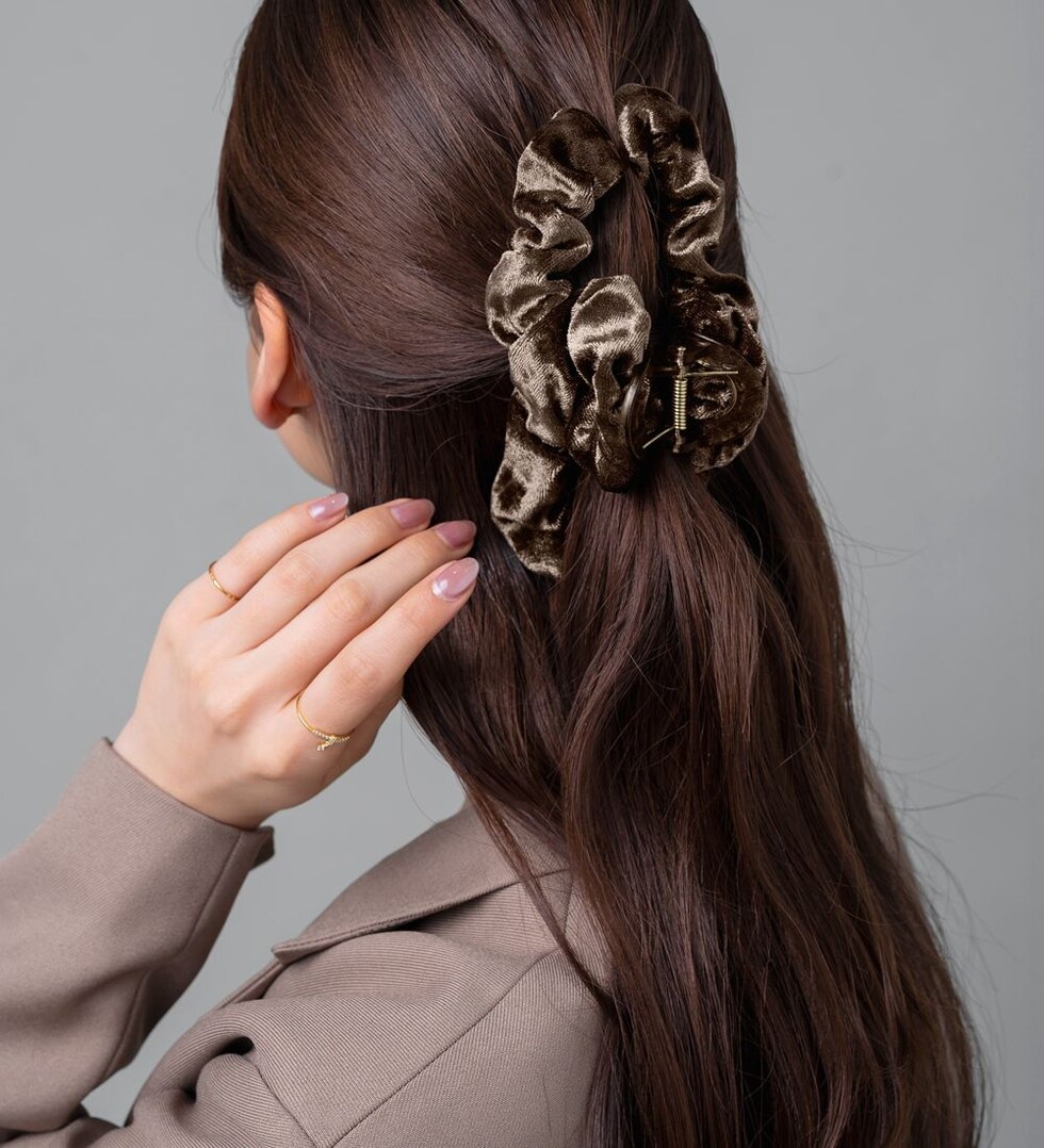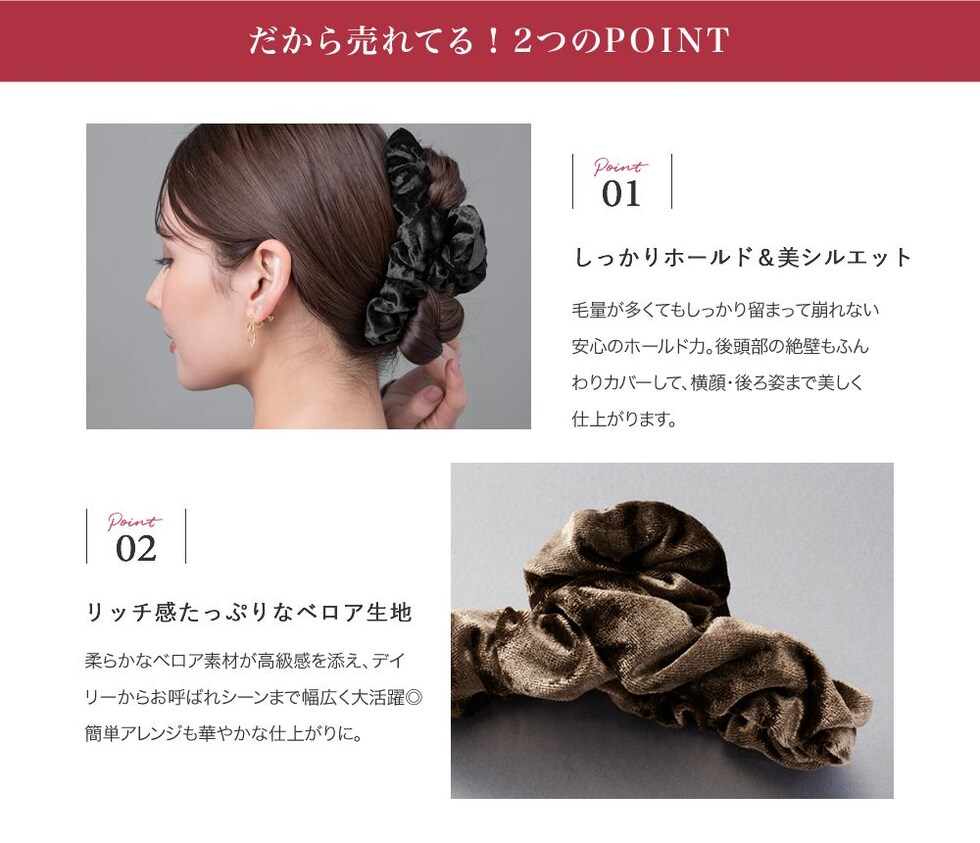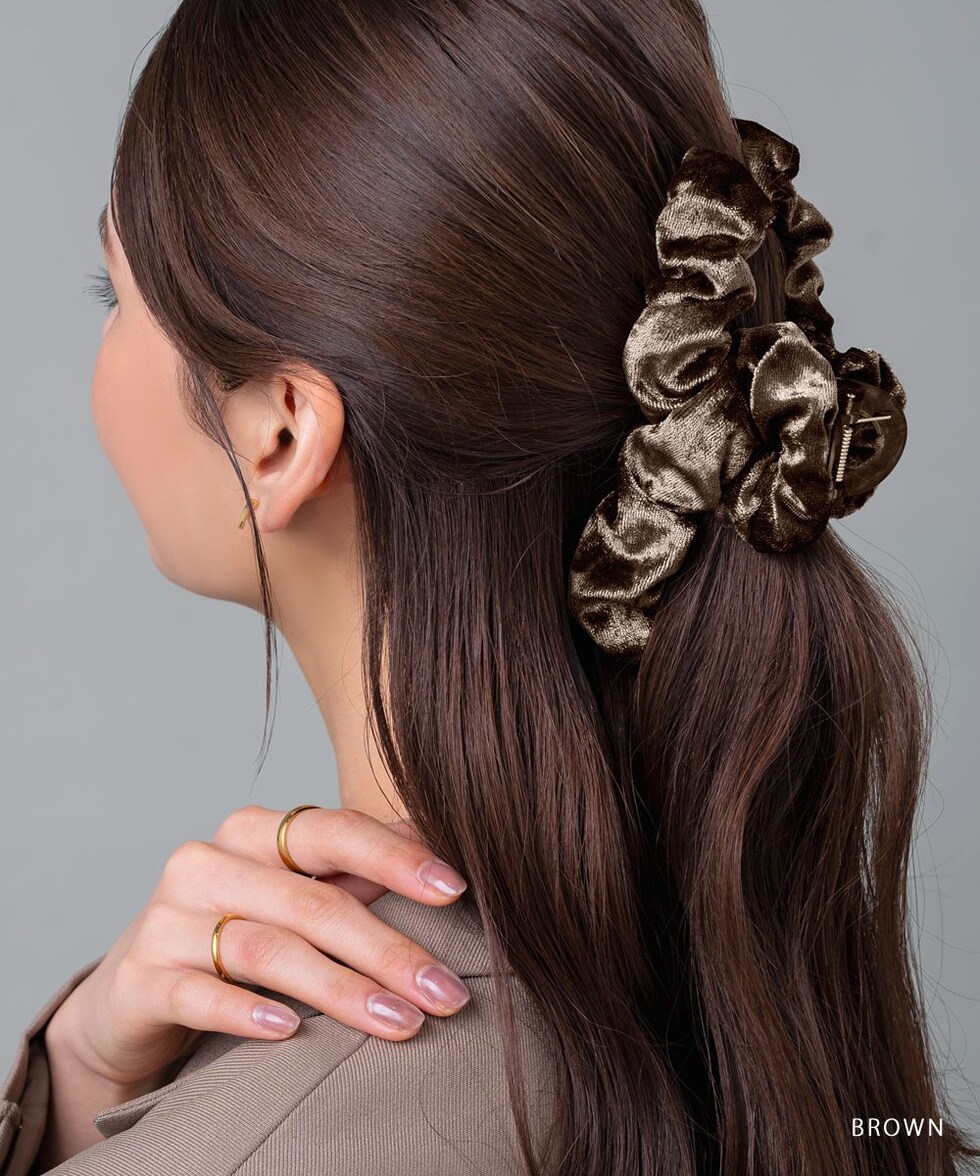 柔らかなベロア素材が高級感を添え、デイリーからお呼ばれシーンまで幅広く大活躍◎簡単アレンジも華やかな仕上がりに。