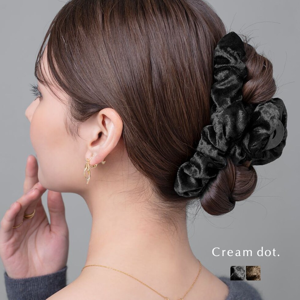 ヘアアクセサリー レディース バンスクリップ ヘアクリップ ベロア フリル ベルベット 光沢感 大きめ ボリューム まとめ髪 髪留め しっかり留まる ヘアアクセ ヘアアレンジ 簡単 ブラウン cream dot 定形外郵便 [ブラック_ワンサイズ]
