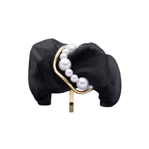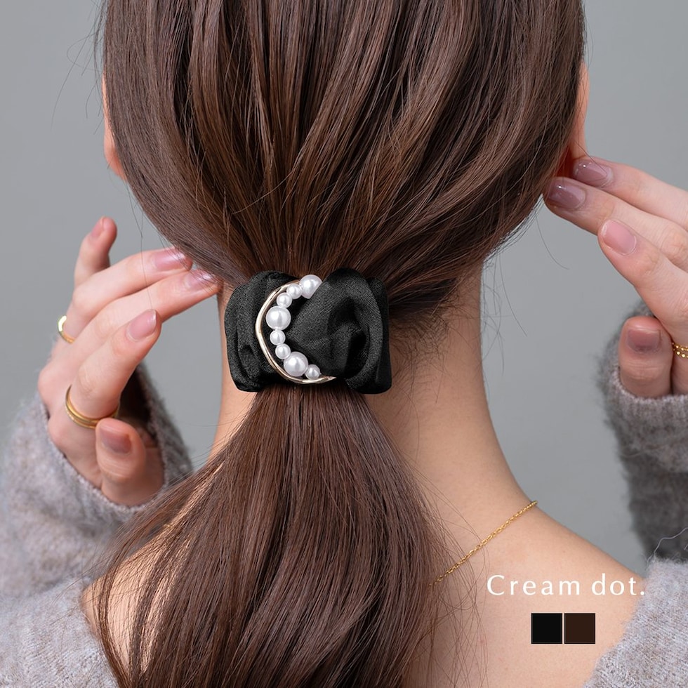 ヘアアクセサリー レディース ポニーフック パール メタル オーガンジー 透け感 シフォン チュール ヘアフック ヘアカフス ヘアアクセ ヘアアレンジ 簡単 まとめ髪 髪留め ヘアゴム ブラウン cream dot ゆうパケット [ブラック_ワンサイズ]