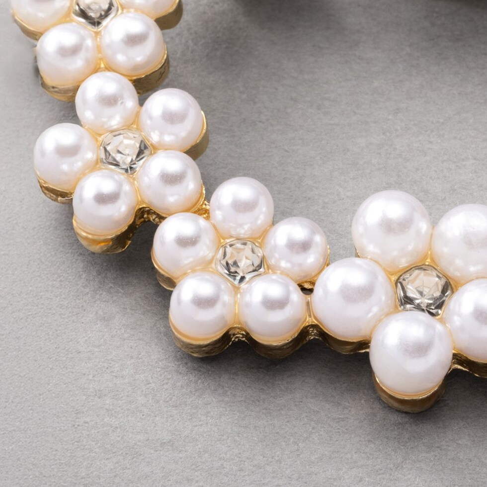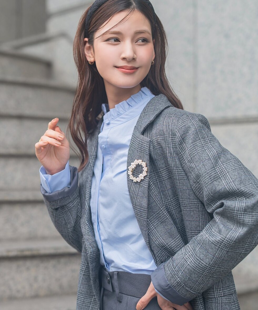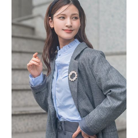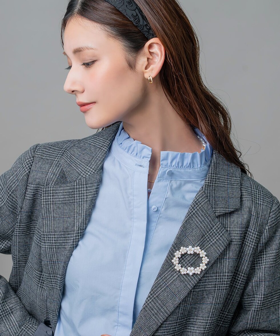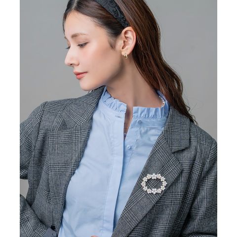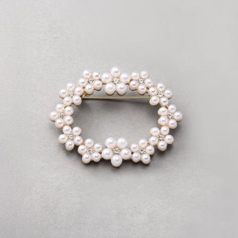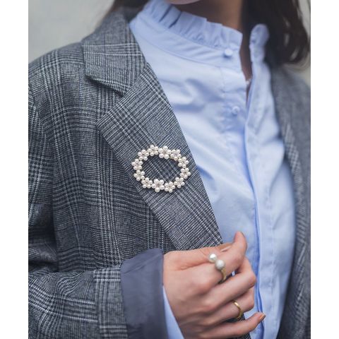 フラワー型の小粒パールと煌くビジューのオーバル型ブローチ。程よく華やかさもありつつリースのように繊細で主張しすぎないデザイン◎フォーマルスタイルを品よく格上げします。