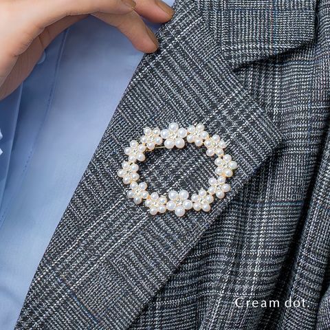 ブローチ フォーマル 卒業式 卒園式 入学式 入園式 ママ スーツ ピン パール 小粒 リース オーバル型 フラワー 花 ビジュー cream dot ゆうパケット [ゴールド_ワンサイズ]