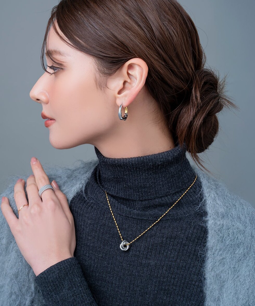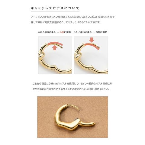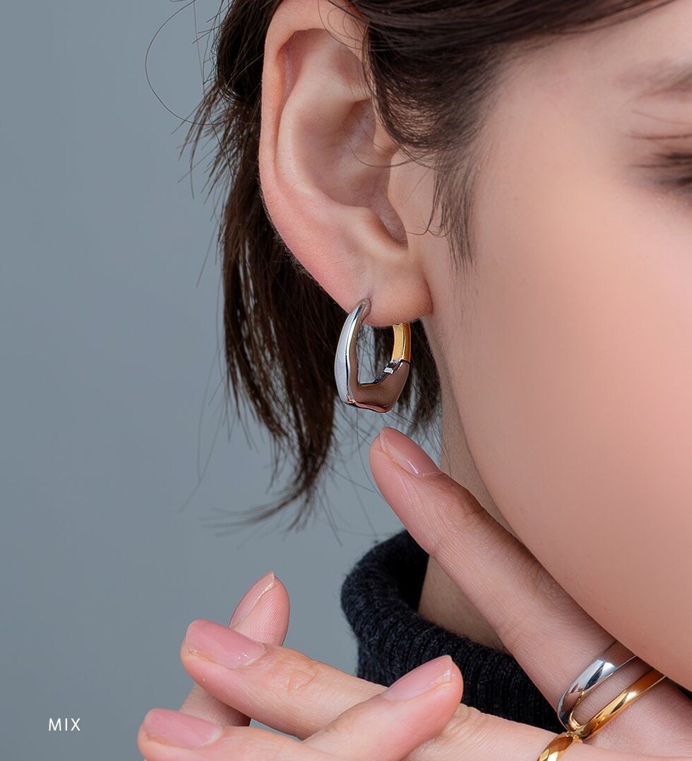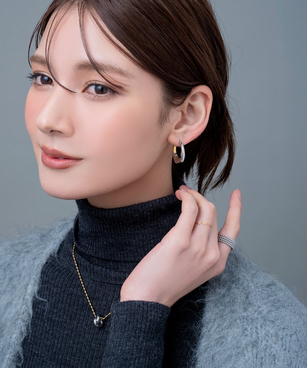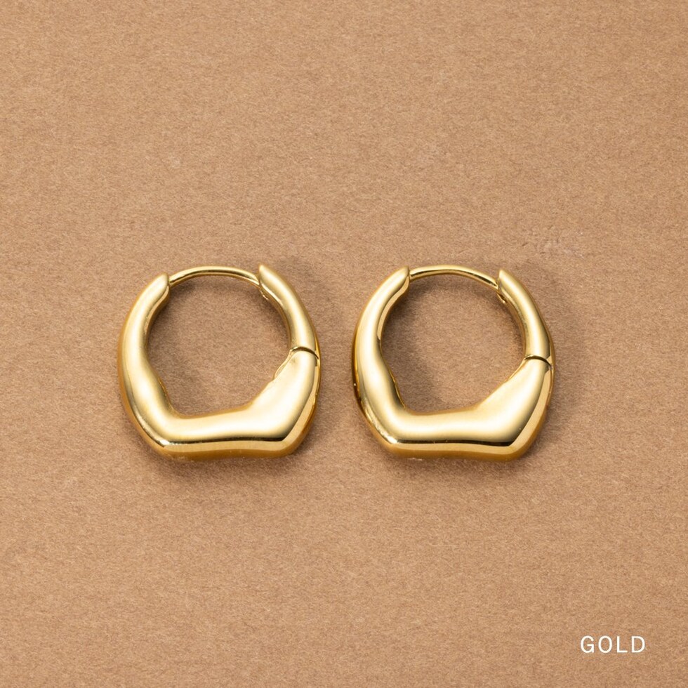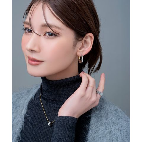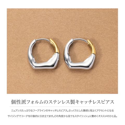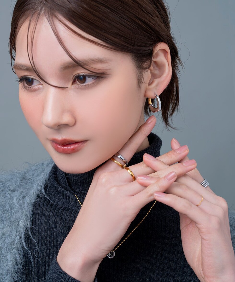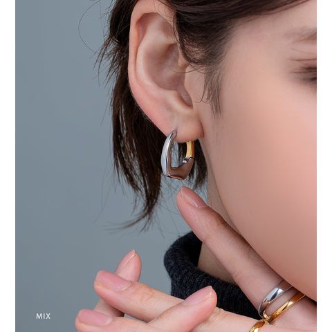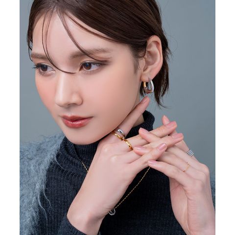 ニュアンスたっぷりなフープラインのキャッチレスピアス。ぷっくりとした艶感と程よくアクセントになるサイジングでコーデを印象的に引き立てます。どの角度から見てもスタイリッシュに艶めくオススメのひと品。