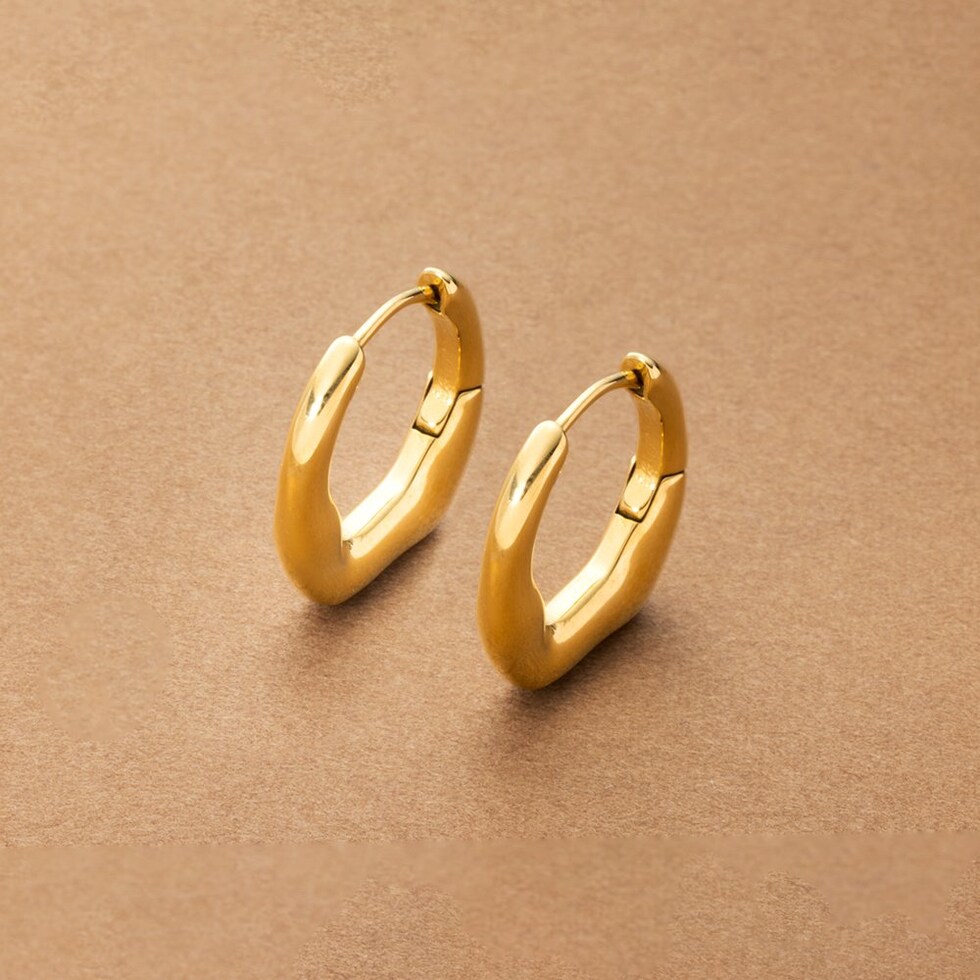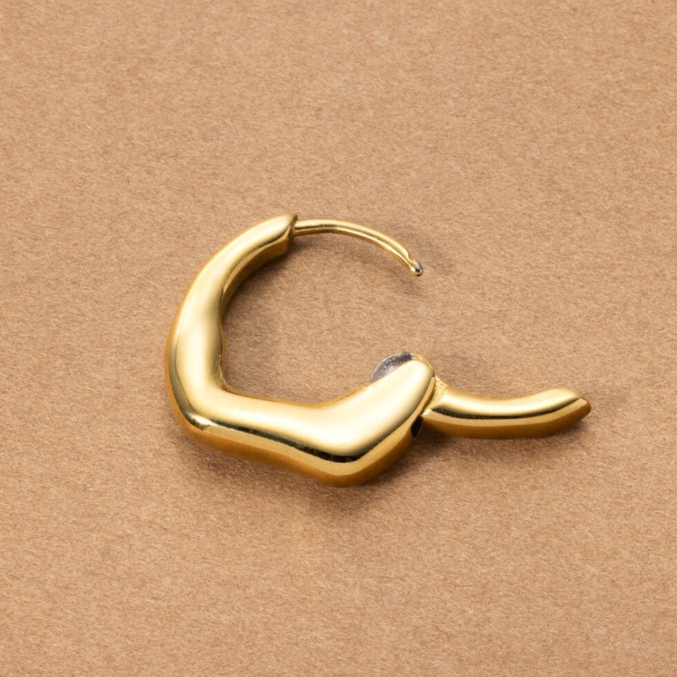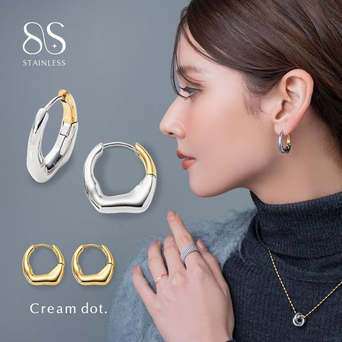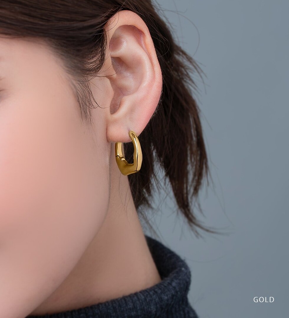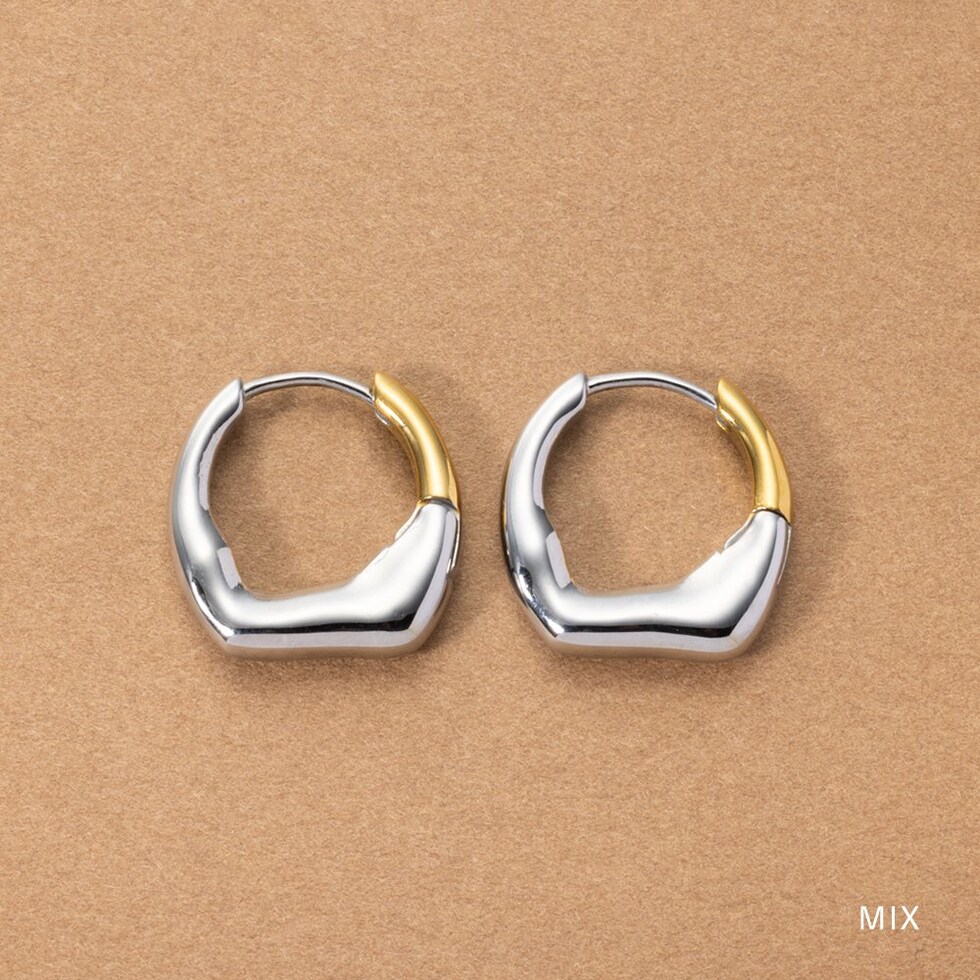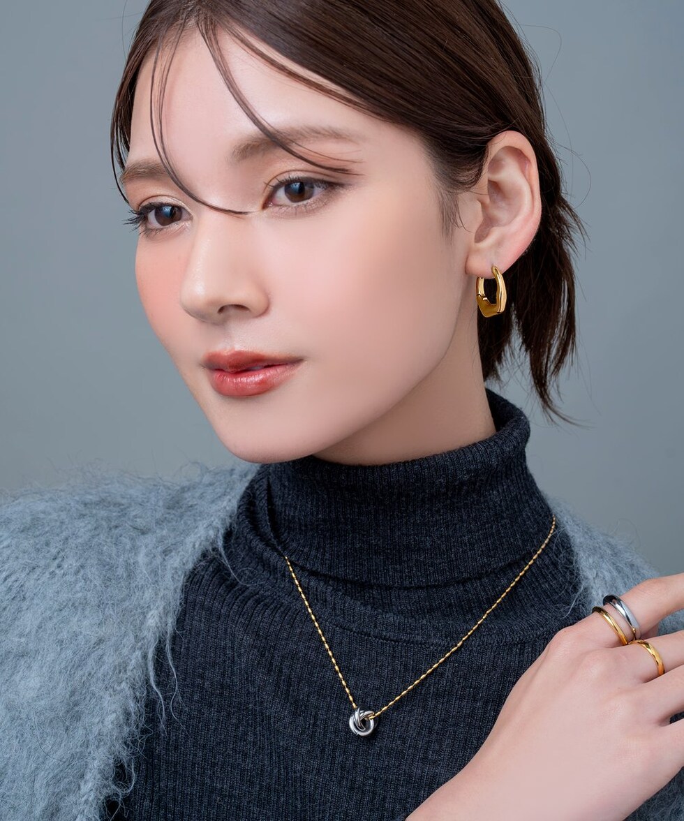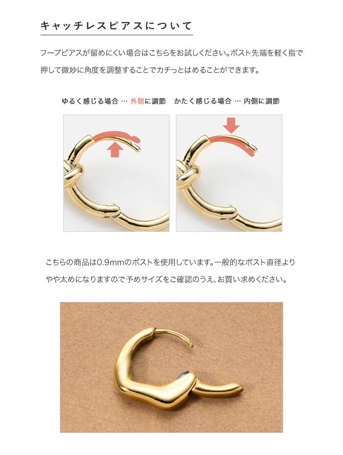 ニュアンスたっぷりなフープラインのキャッチレスピアス。ぷっくりとした艶感と程よくアクセントになるサイジングでコーデを印象的に引き立てます。どの角度から見てもスタイリッシュに艶めくオススメのひと品。