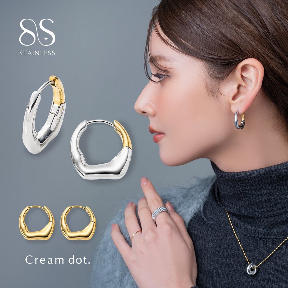 ピアス ステンレス 金属アレルギー サージカルステンレス レディース つけっぱなし キャッチレス 中折れ 開閉式 ワンタッチ フープ ぷっくり メタル 艶 cream dot ゆうパケット [ミックス_ピアス]