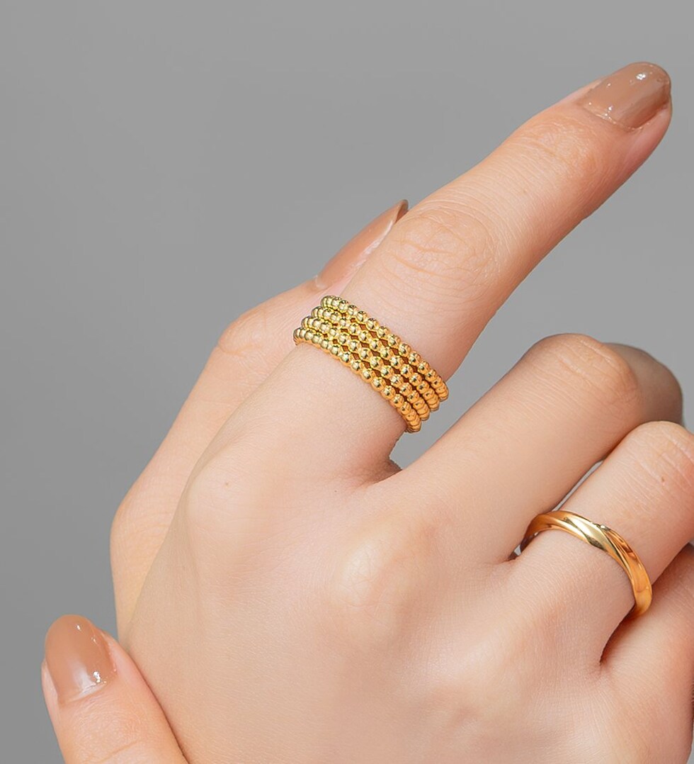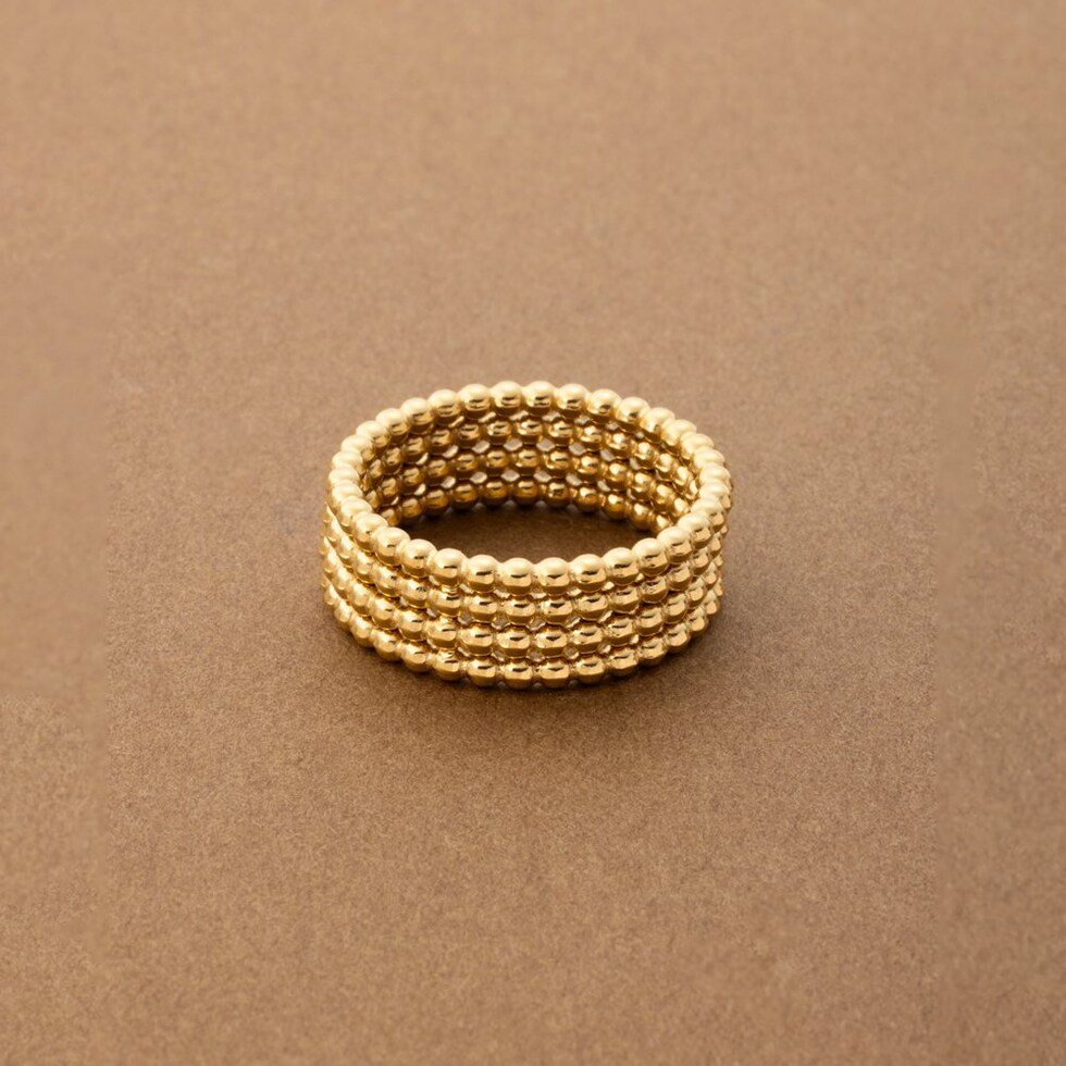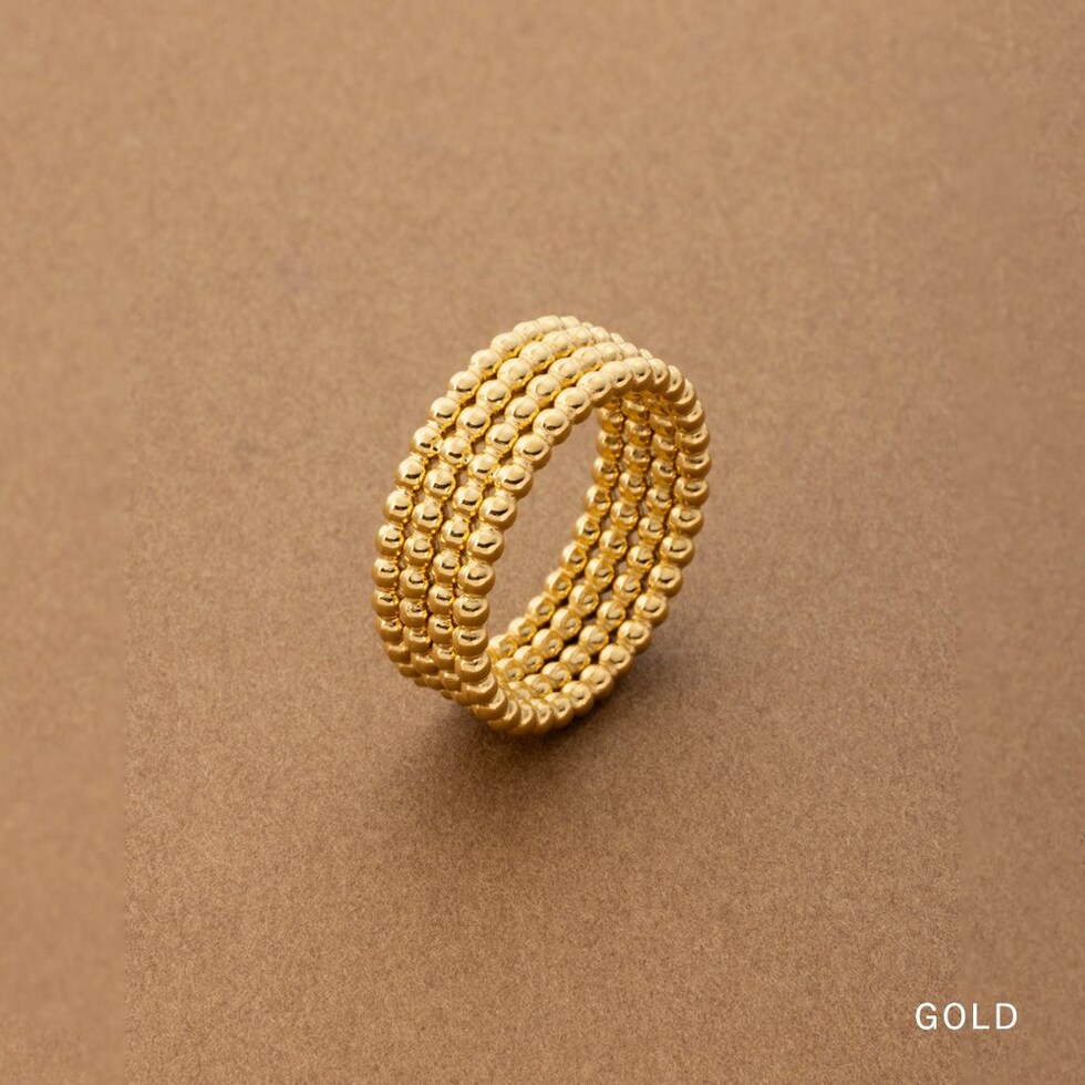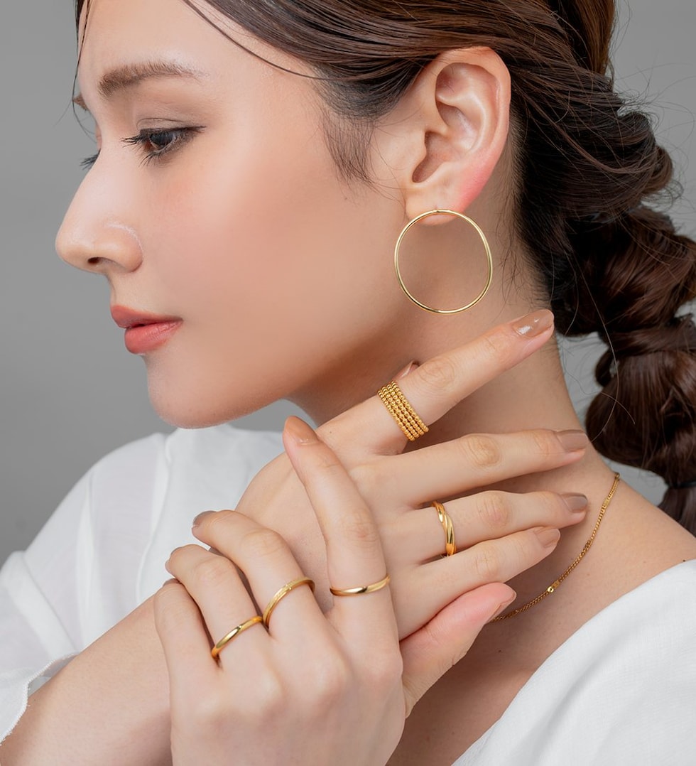 メッシュボールが表情豊かに艶めくリング。程よいボリューム感をプラスし、こなれた雰囲気を演出します。シンプルでも個性的なデザインで周りと差を付ける大人顔アイテム。コーデのアクセントにオススメです。