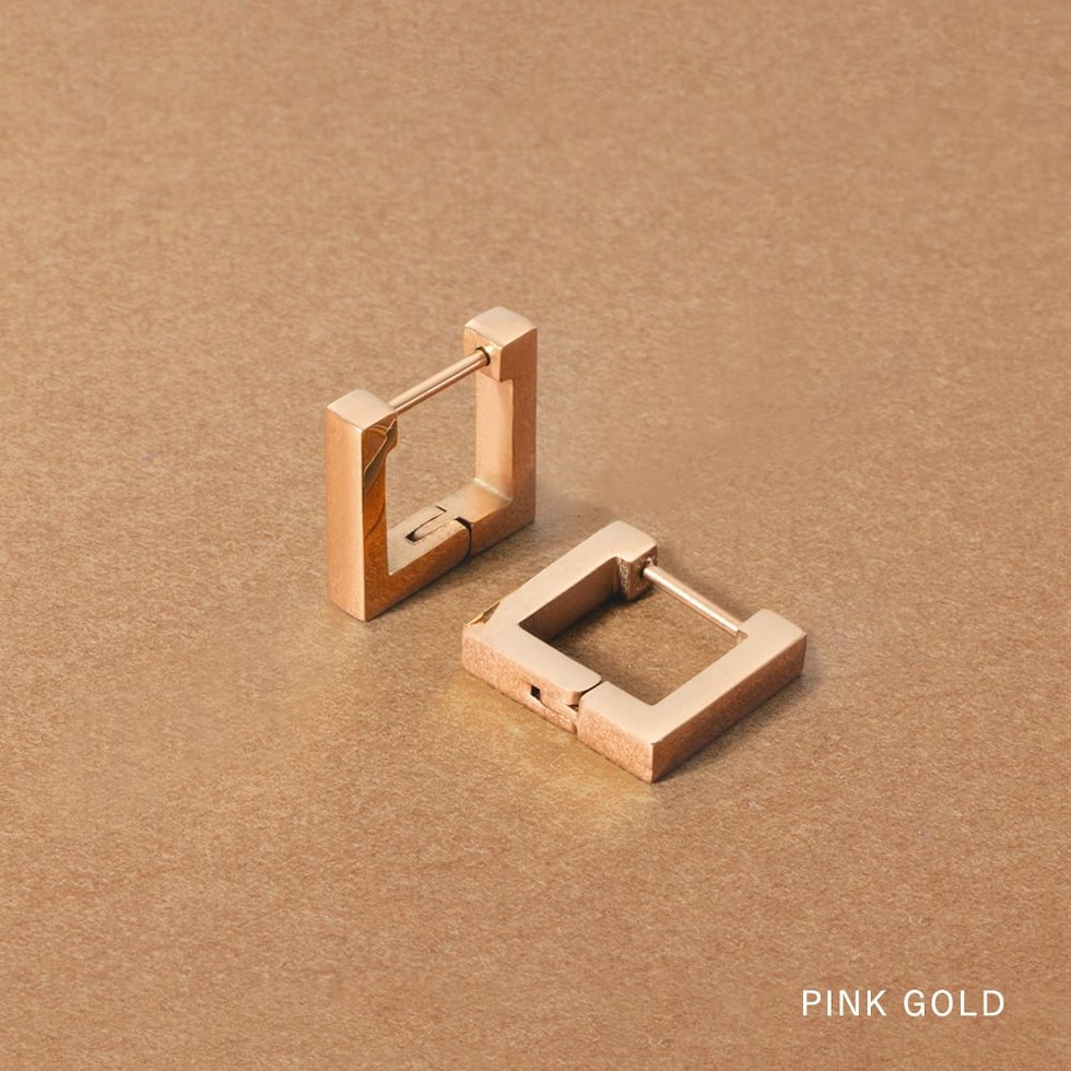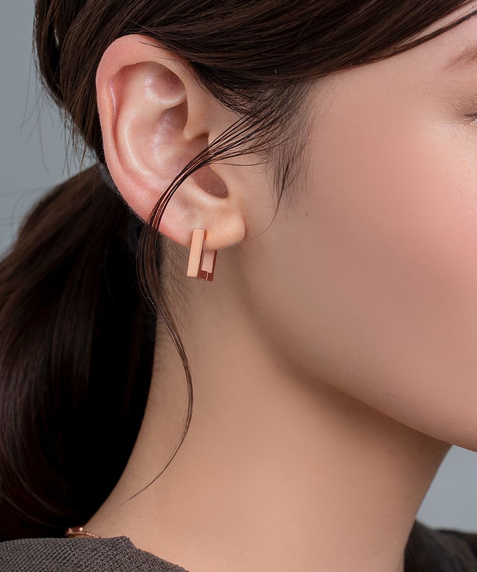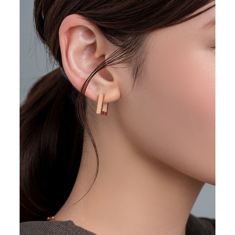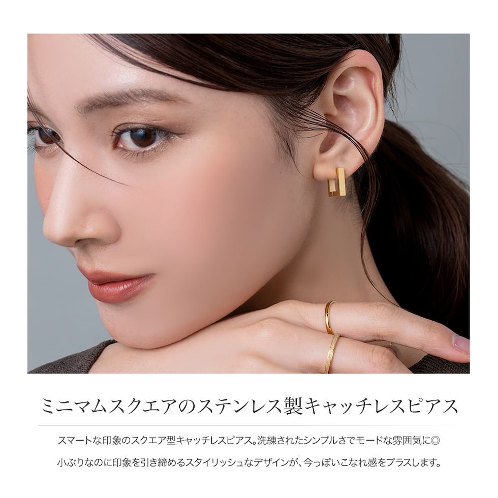 スマートな印象のスクエア型キャッチレスピアス。洗練されたシンプルさでモードな雰囲気に◎小ぶりなのに印象を引き締めるスタイリッシュなデザインが、今っぽいこなれ感をプラスします。