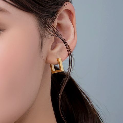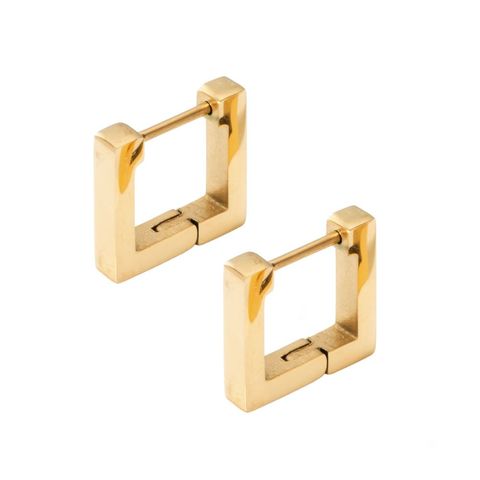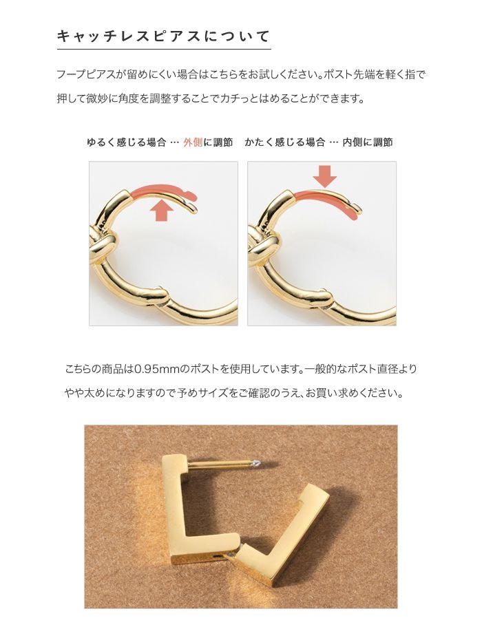 ピアス ステンレス 金属アレルギー サージカルステンレス レディース つけっぱなし キャッチレス 中折れ 開閉式 ワンタッチ スクエア 四角 フープ メタル cream dot ゆうパケット [ゴールド_ピアス]