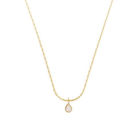 キラキラと煌く小粒なドロップビジューを飾ったネックレス。シンプルで洗練されたデザインがさりげなく上品な雰囲気に。控えめなモチーフが可愛くデイリーに活躍してくれるひと品◎
