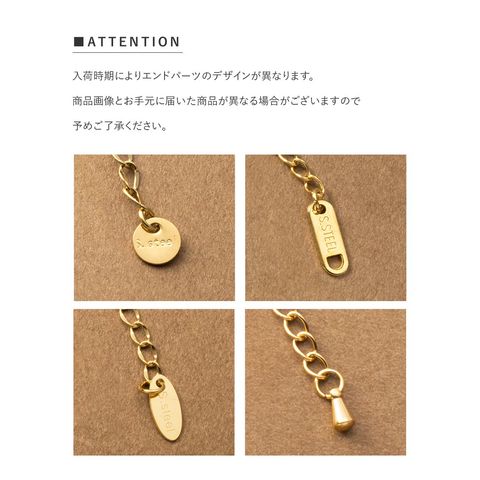 錆びにくいサージカルステンレス素材を使用。アクセサリーでかぶれやすい敏感肌の方にもオススメな金属アレルギー対応の素材です。