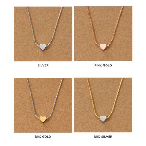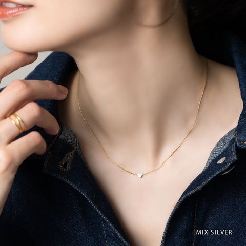 極小のハートモチーフが胸元でさりげなく輝くネックレス。MIXカラーと単色デザインの2種類をご用意しました。流行りに流されないシンプルデザインで長い期間重宝しそう。錆びにくいステンレス製でデイリーに使えます◎
