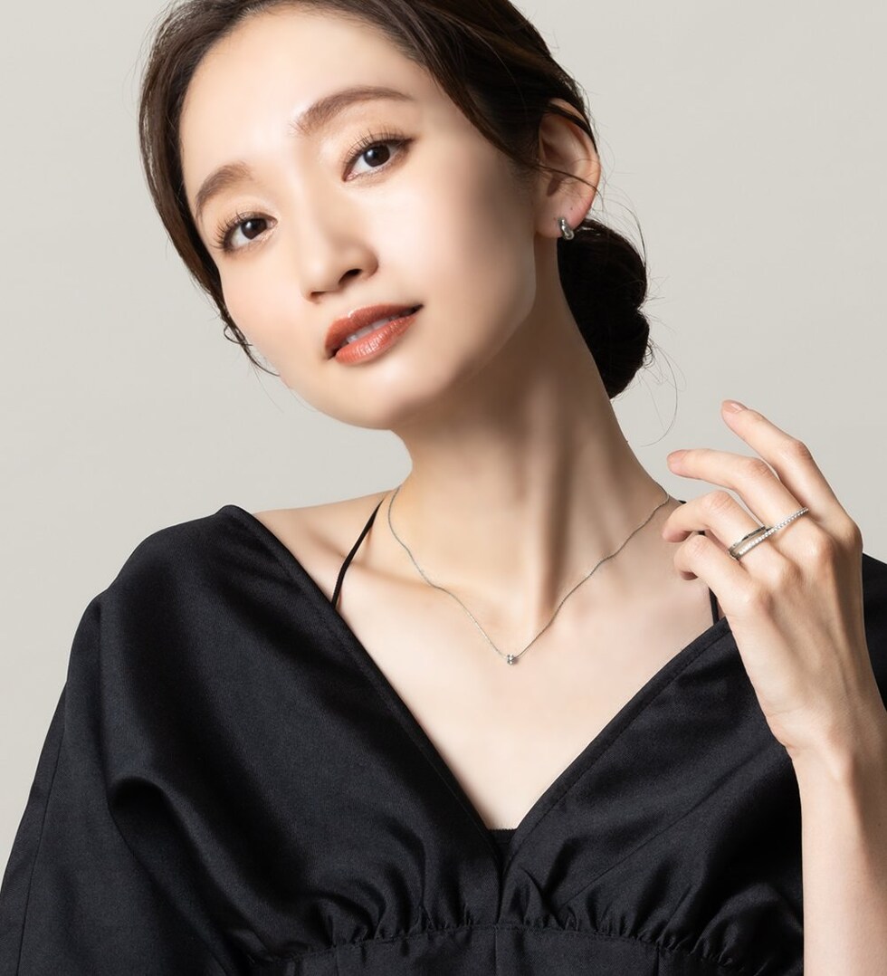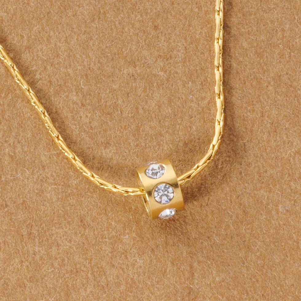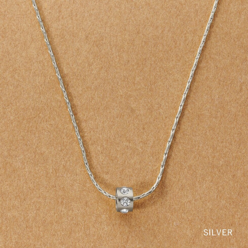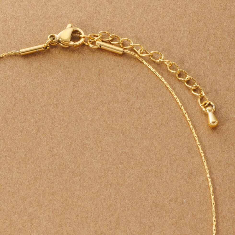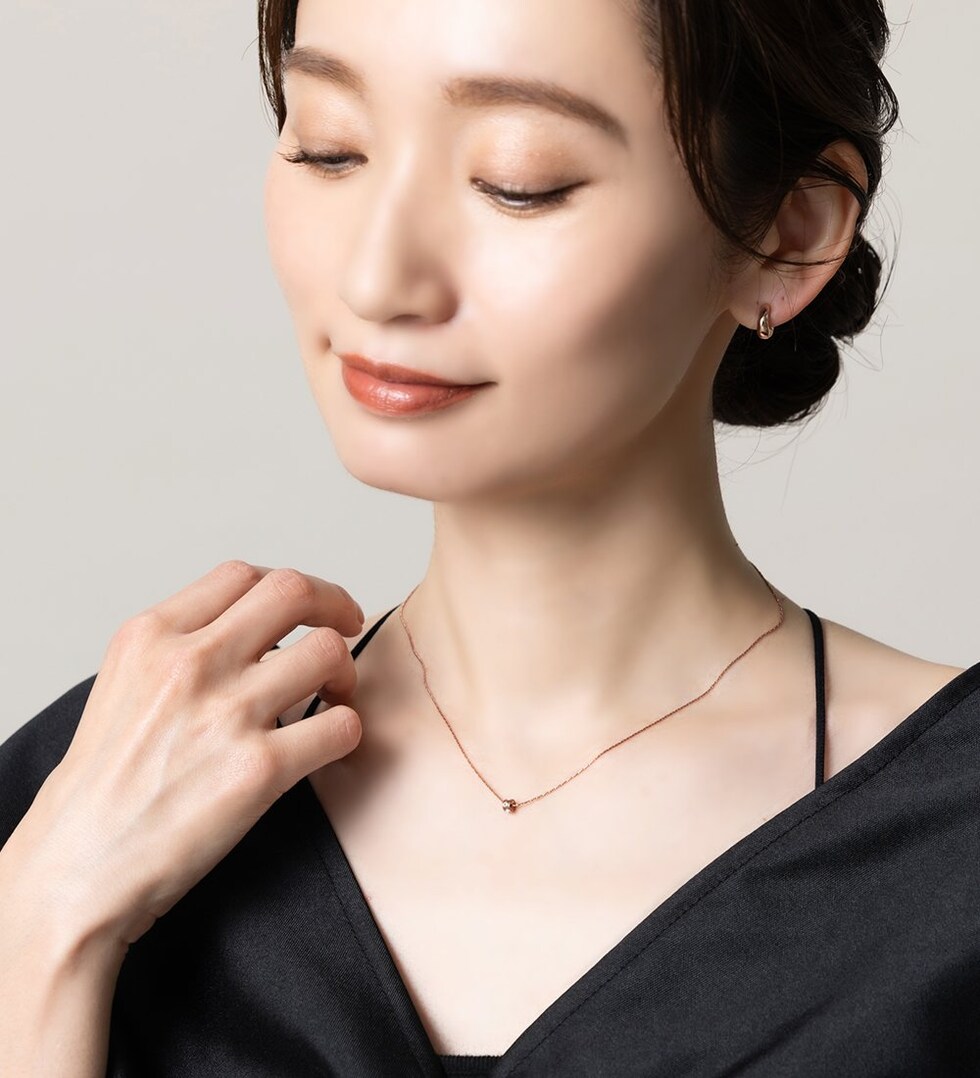 ミニマルなリングのステンレス製ネックレス。リングに埋め込まれたビジューの凛とした輝きが、胸元にさりげない華やかさをプラスしてくれます。大人びた表情に導いてくれる肌馴染みの良い逸品。
