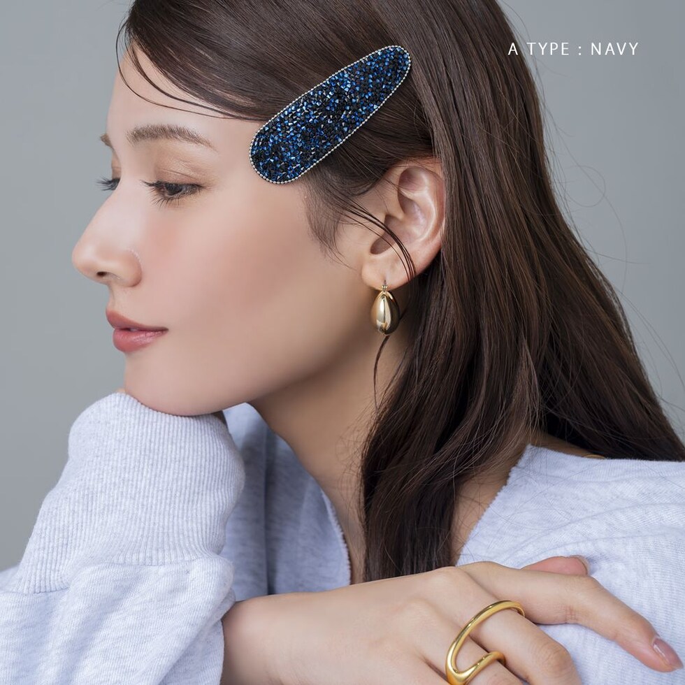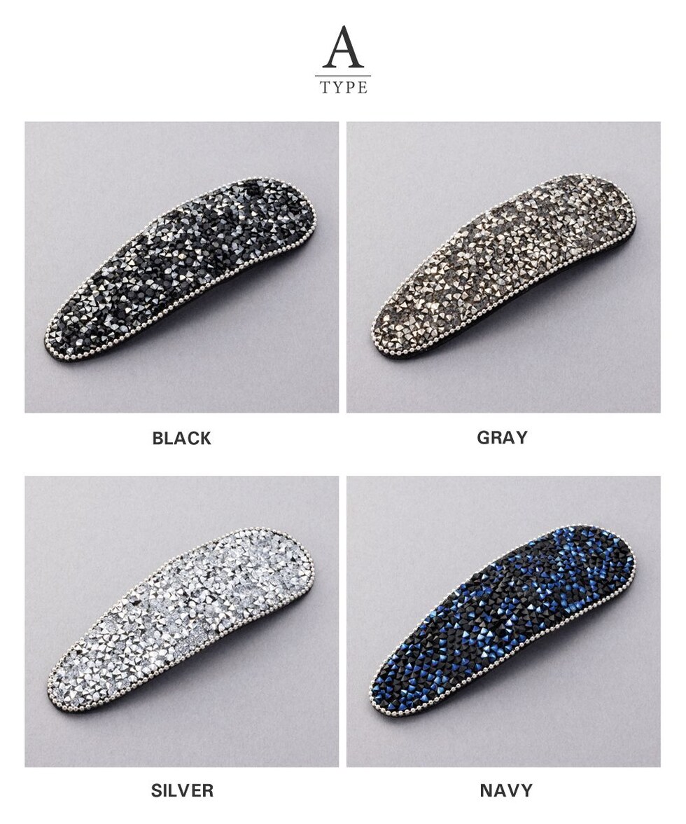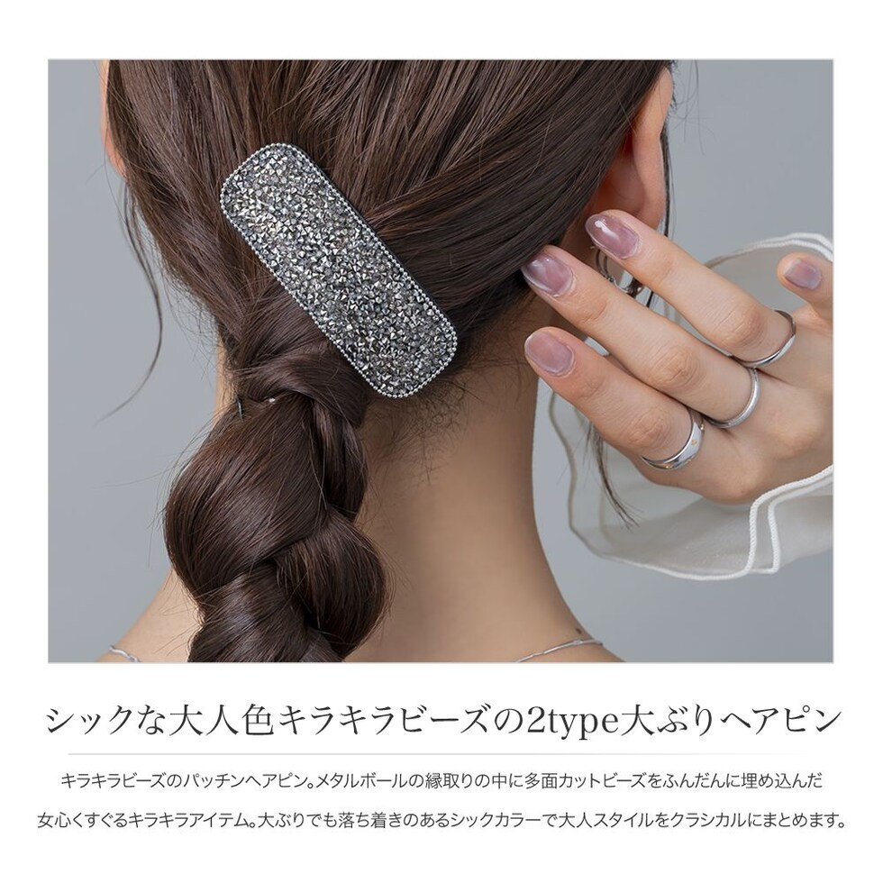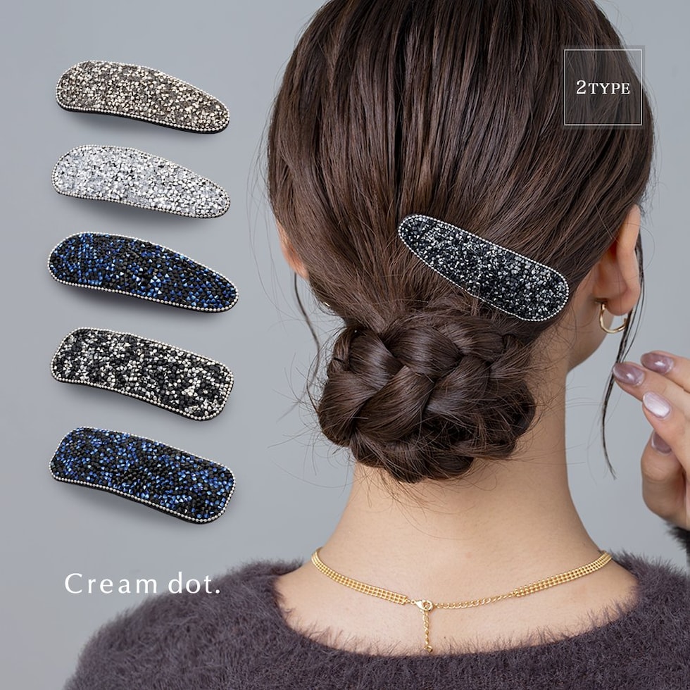 ヘアアクセサリー レディース ヘアピン パッチンピン スリーピン パッチン留め ヘアクリップ 大きめ ラメ スクエア キラキラ ビーズ 多面カット メタルボール 縁取り ネイビー cream dot ゆうパケット [B:シルバー_ワンサイズ]