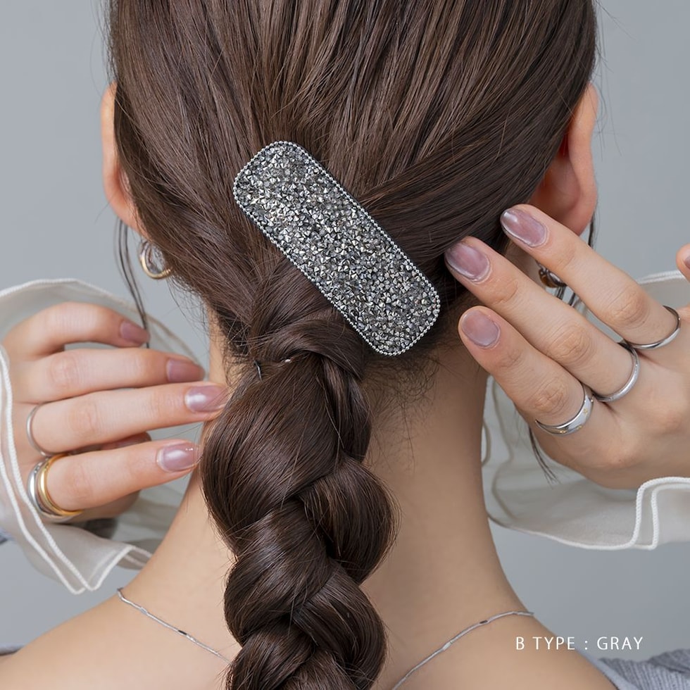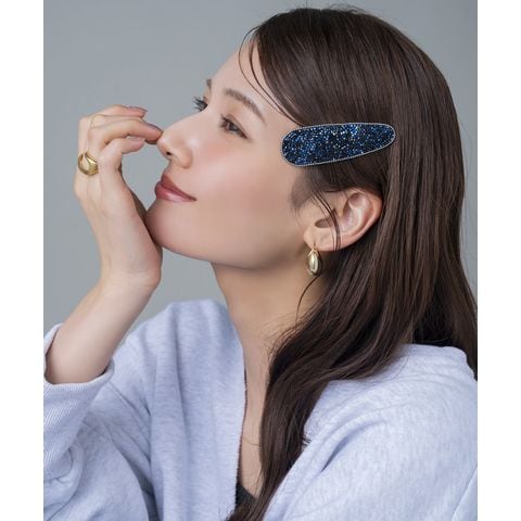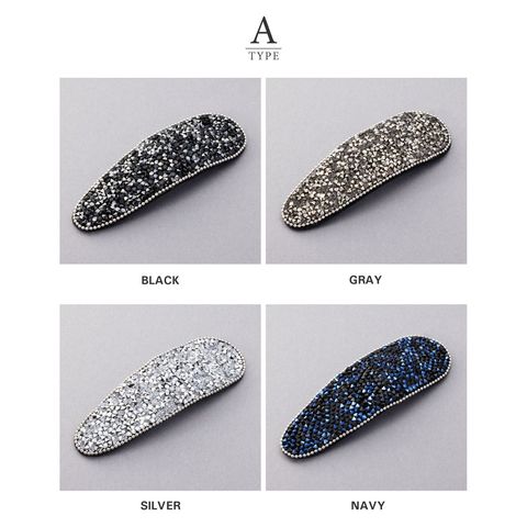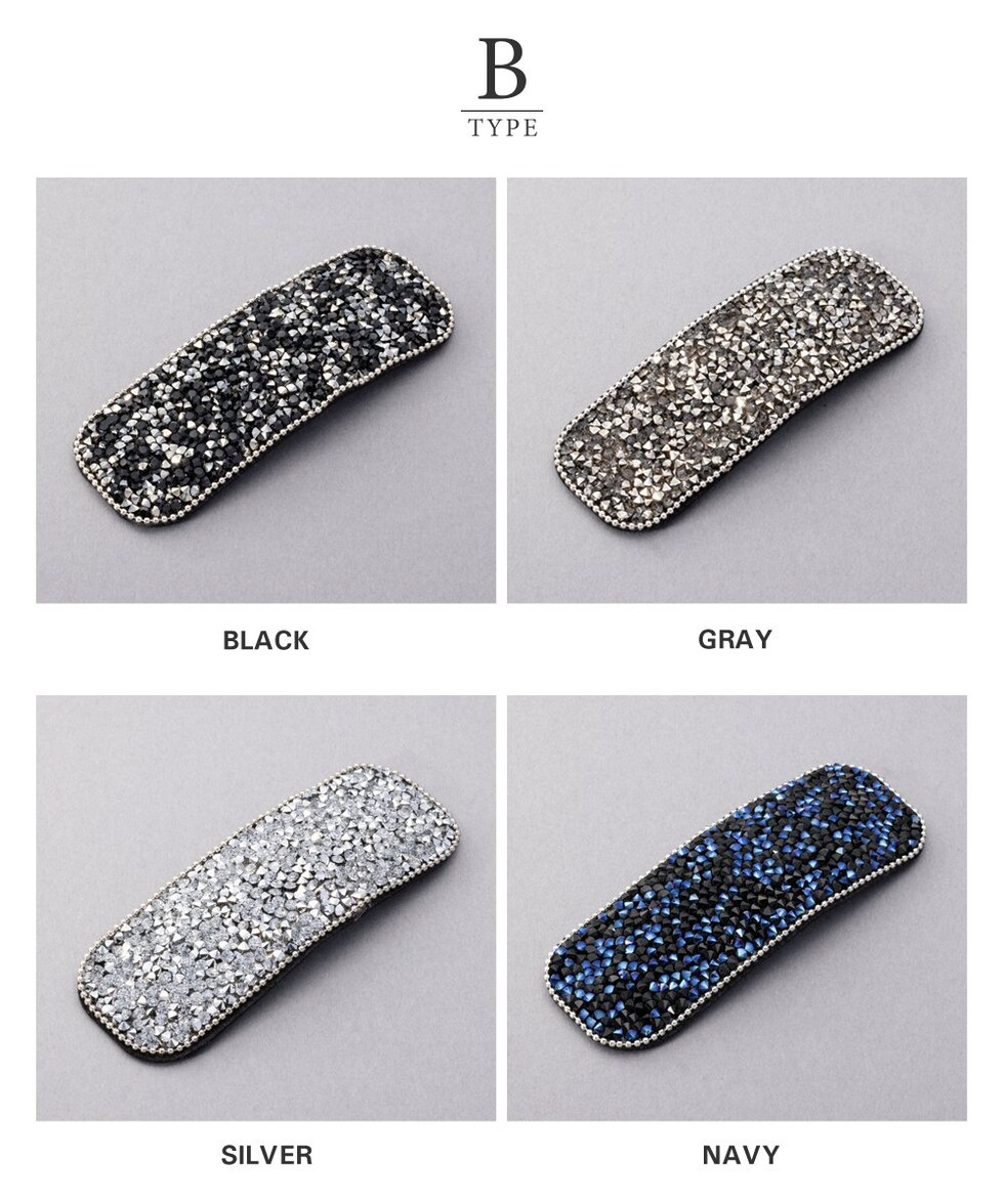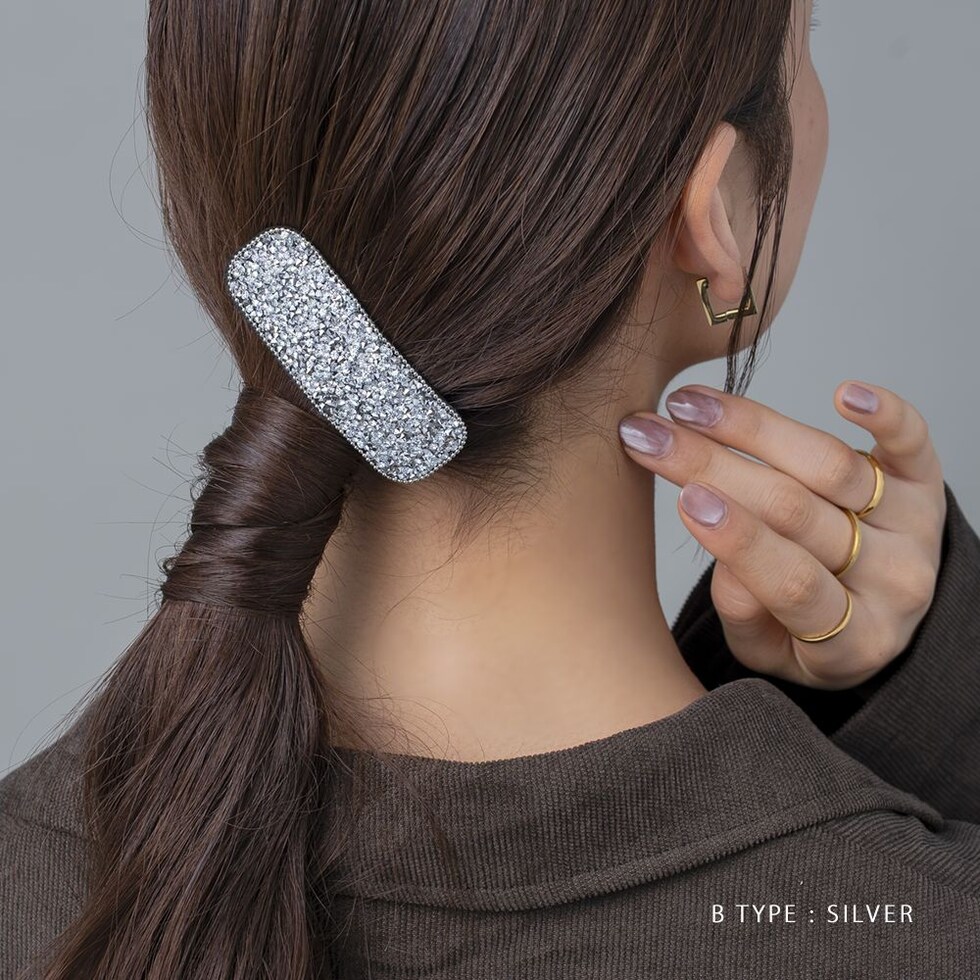 ヘアアクセサリー レディース ヘアピン パッチンピン スリーピン パッチン留め ヘアクリップ 大きめ ラメ スクエア キラキラ ビーズ 多面カット メタルボール 縁取り ネイビー cream dot ゆうパケット [B:シルバー_ワンサイズ]