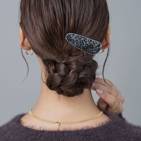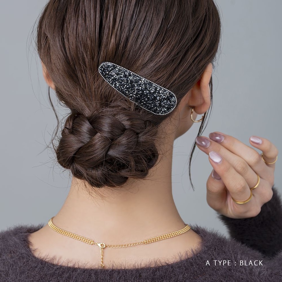 キラキラビーズのパッチンヘアピン。メタルボールの縁取りの中に多面カットビーズをふんだんに埋め込んだ女心くすぐるキラキラアイテム。大ぶりでも落ち着きのあるシックカラーで大人スタイルをクラシカルにまとめます。