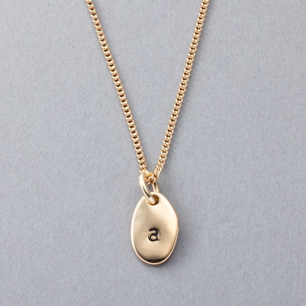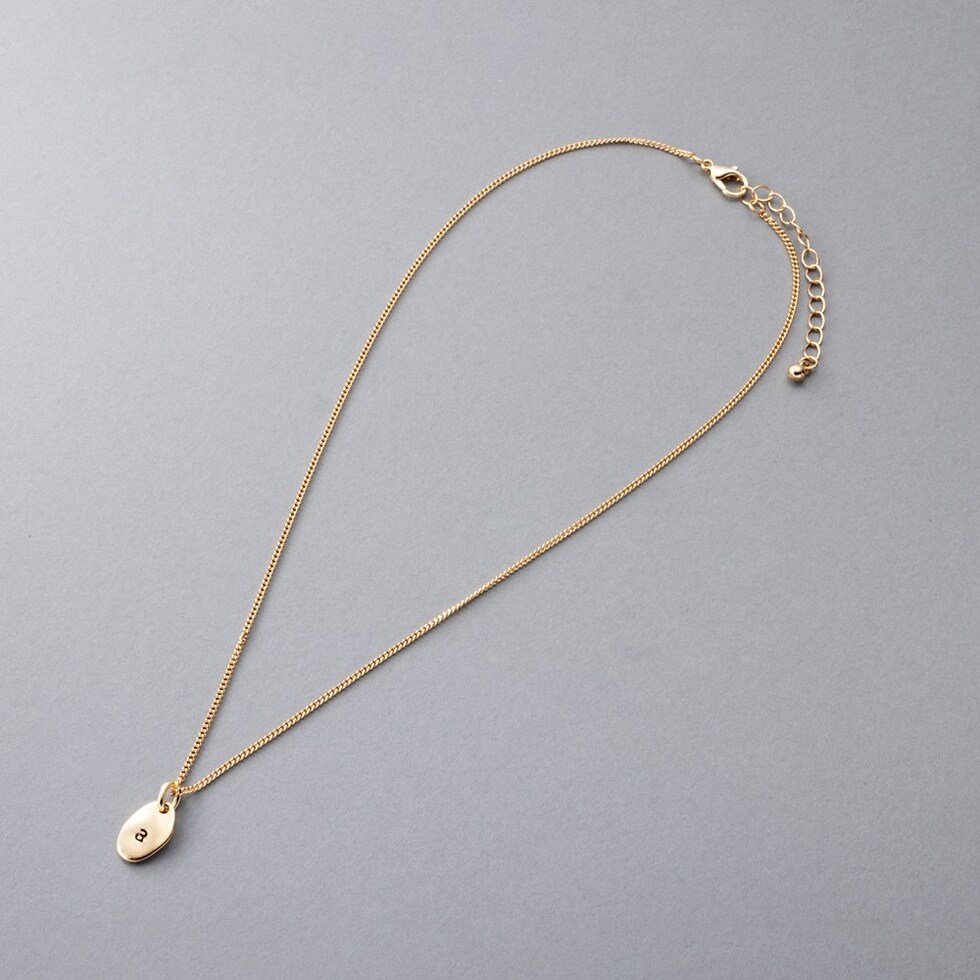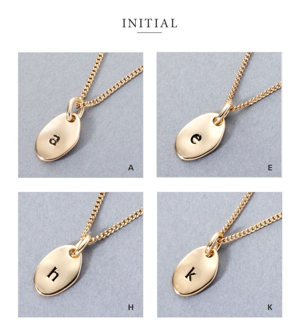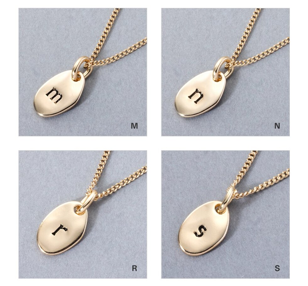 アルファベットが刻印されたプレートネックレス。ニュアンスのあるフォルムが、洗練された大人の雰囲気を演出します。さりげない艶めきと程よい存在感で、毎日のコーデに自然と馴染むアイテムです。