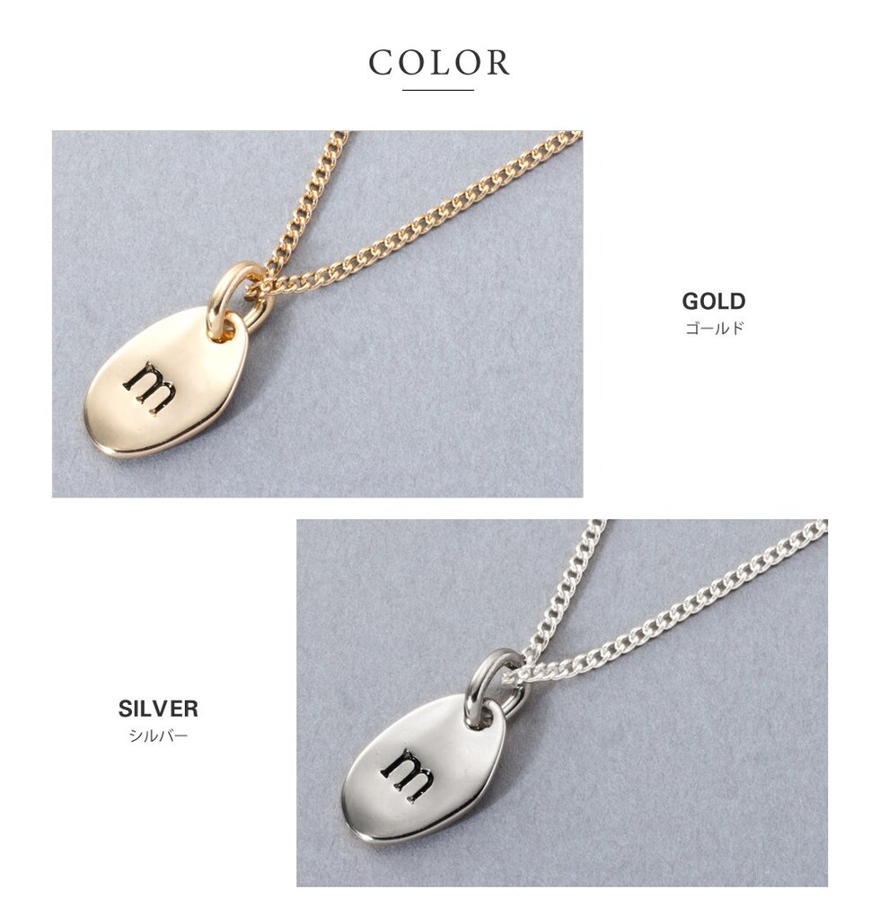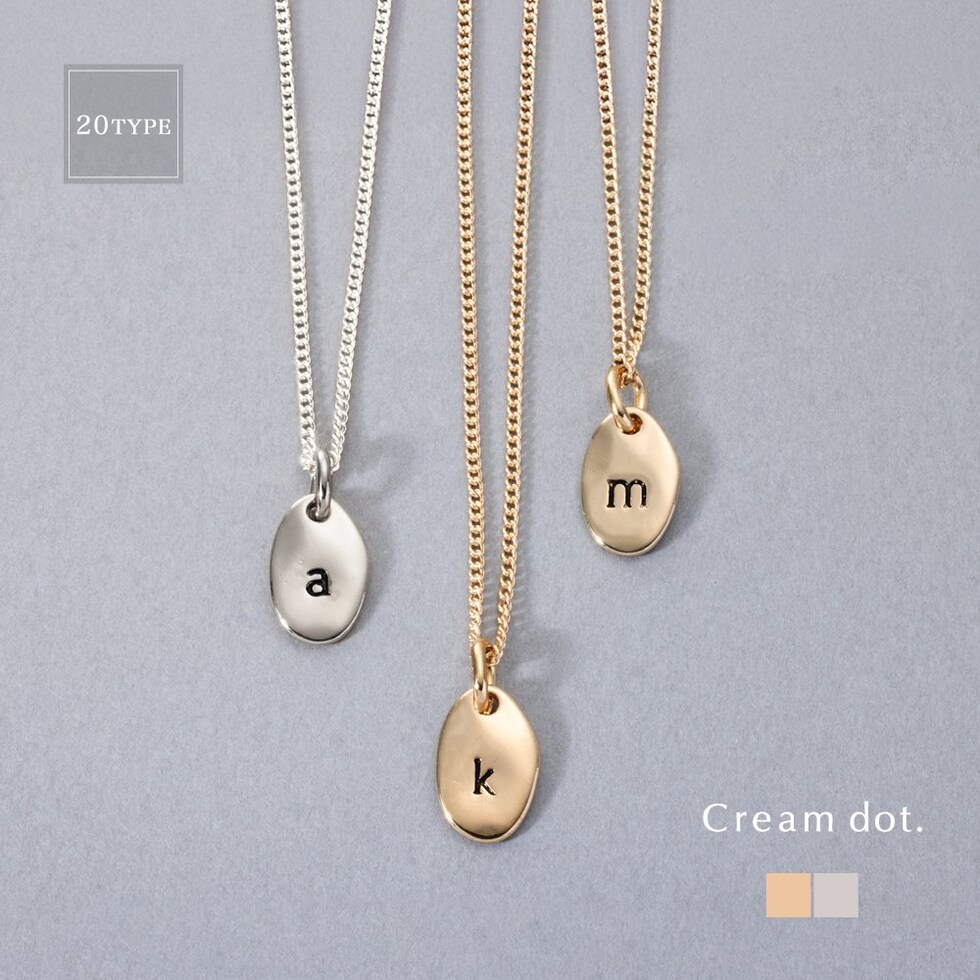 ネックレス レディース ショート チェーン イニシャル アルファベット 刻印 名前 英語 オーバル プレート メタル 艶 cream dot ゆうパケット [シルバー_R]