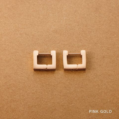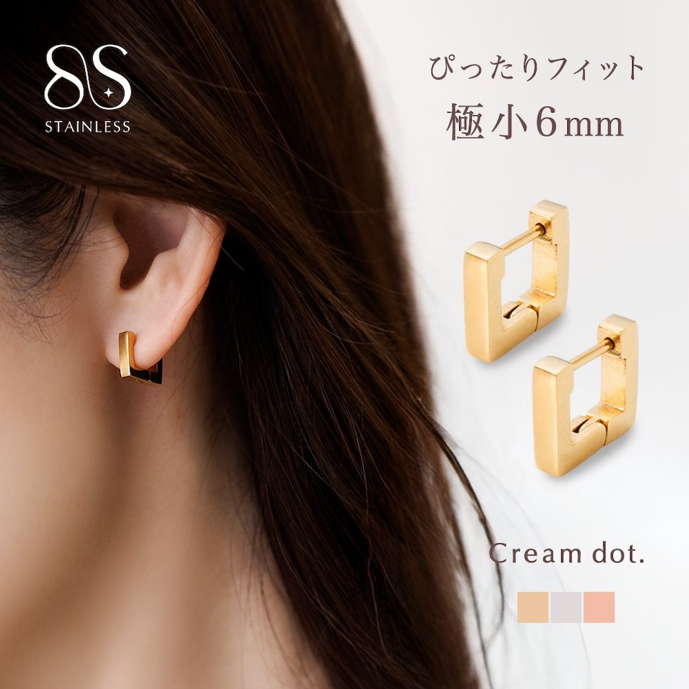 ピアス ステンレス 金属アレルギー サージカルステンレス レディース 金属アレルギー対応 つけっぱなし キャッチレス 中折れ 開閉式 ワンタッチ フープ 6mm スクエア メタル 耳たぶフィット フィット cream dot ゆうパケット [ピンクゴールド_ピアス]