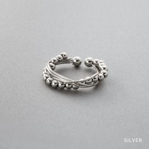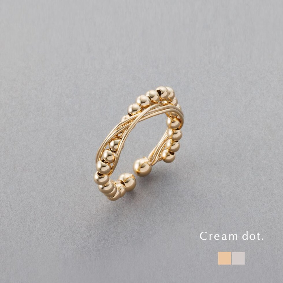 リング 指輪 レディース オープンリング C型 メタルボール ワイヤー レイヤード風 重なり フリーサイズ 微調整可能 後ろ側オープン cream dot ゆうパケット [シルバー_フリーサイズ]